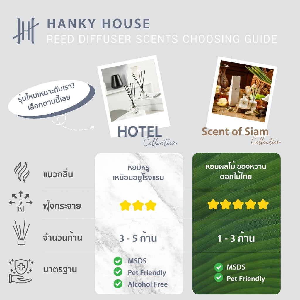แท้ ✅ ก้านไม้หอม Hanky Reed Diffuser ก้านน้ำหอม น้ำหอมอโรม่า น้ำมันหอมระเหย ก้านหอม 50 ml