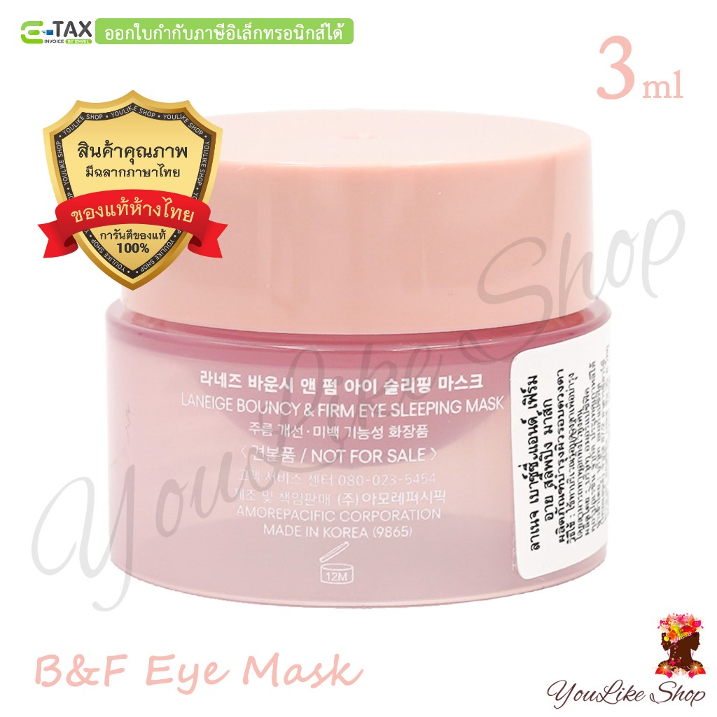 Laneige Bouncy & Firm Eye Sleeping Mask (3 ml) มาส์กผิวรอบดวงตา สูตรยกกระชับ ผิวนุ่มเด้ง [ BF ]