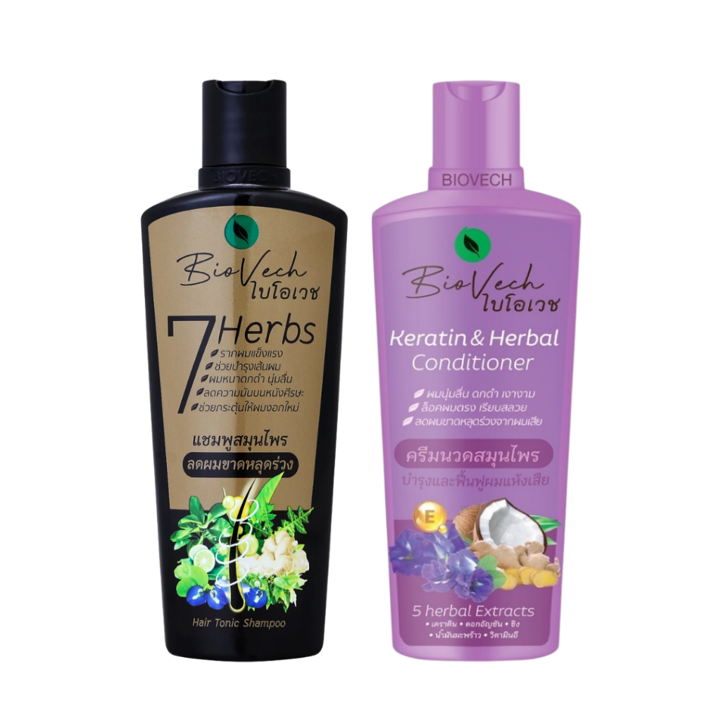 [ 1ขวด ] Bio Vech ไบโอเวช แชมพูและครีมนวดสมุนไพร ขนาด 225 มล. (1ขวด) มี 2 สูตร