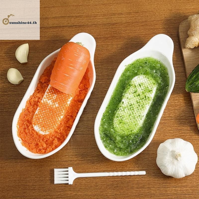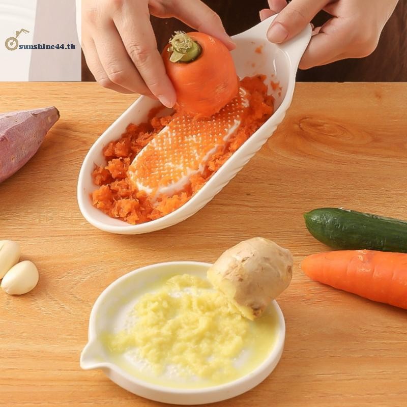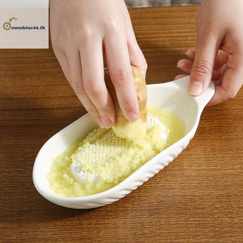 สี่ดวงอาทิตย์ สีขาวสไตล์เรียบง่ายเซรามิกขิงขูดเครื่องมือเครื่องบดมือกระเทียมเจ้าชู้แบบพกพาแครอทขิงบดครัวเครื่องมือด้วยแปรง ไทย