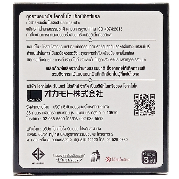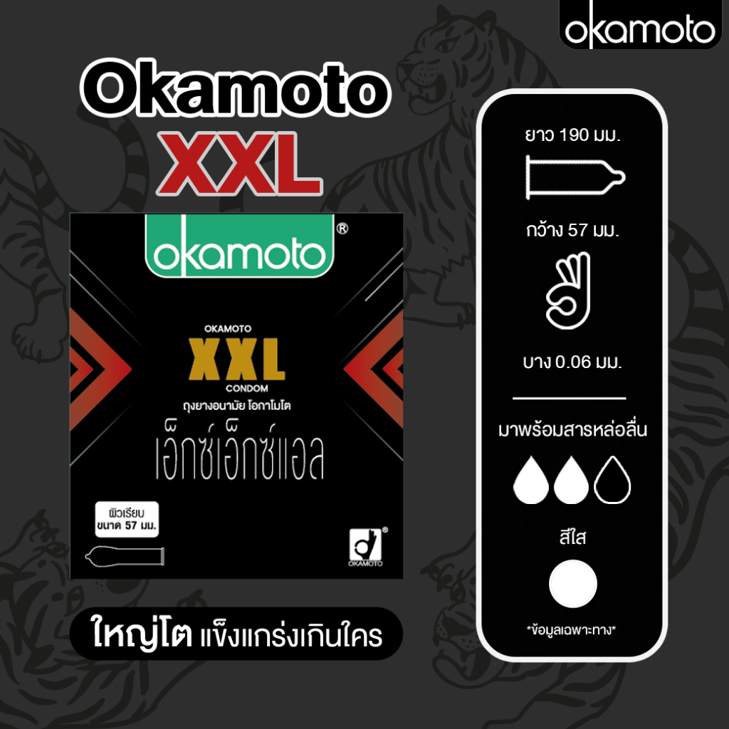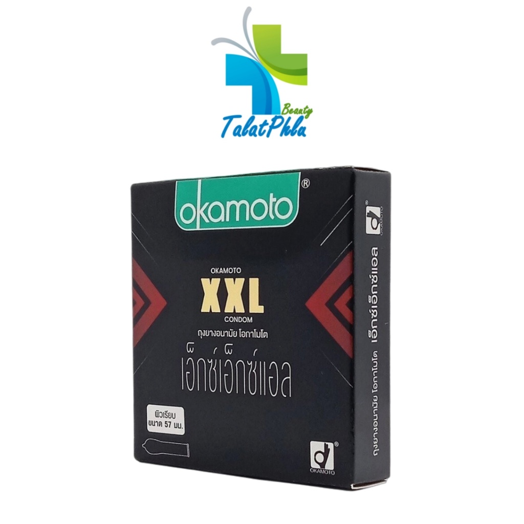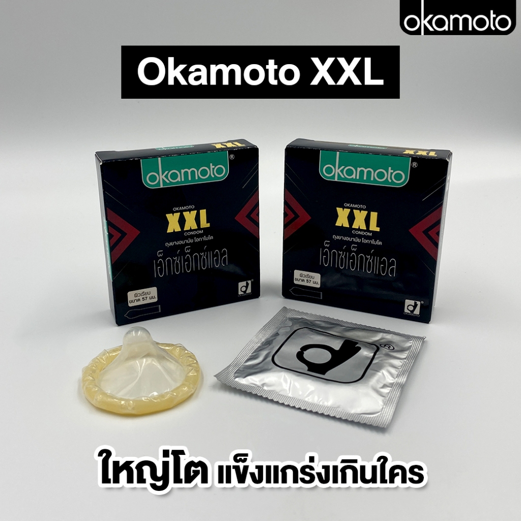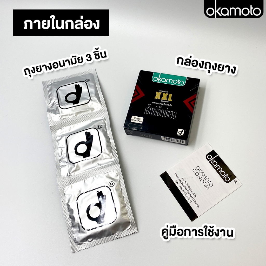 Okamoto โอกาโมโต ถุงยางอนามัย ขนาด 57 mm. [รุ่น 2XL] [กล่องเล็ก 3 ชิ้น] [1 กล่อง] [ไม่ระบุชื่อหน้ากล่อง] ถุงยางญี่ปุ่น
