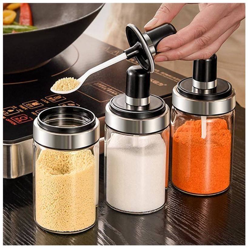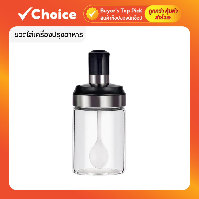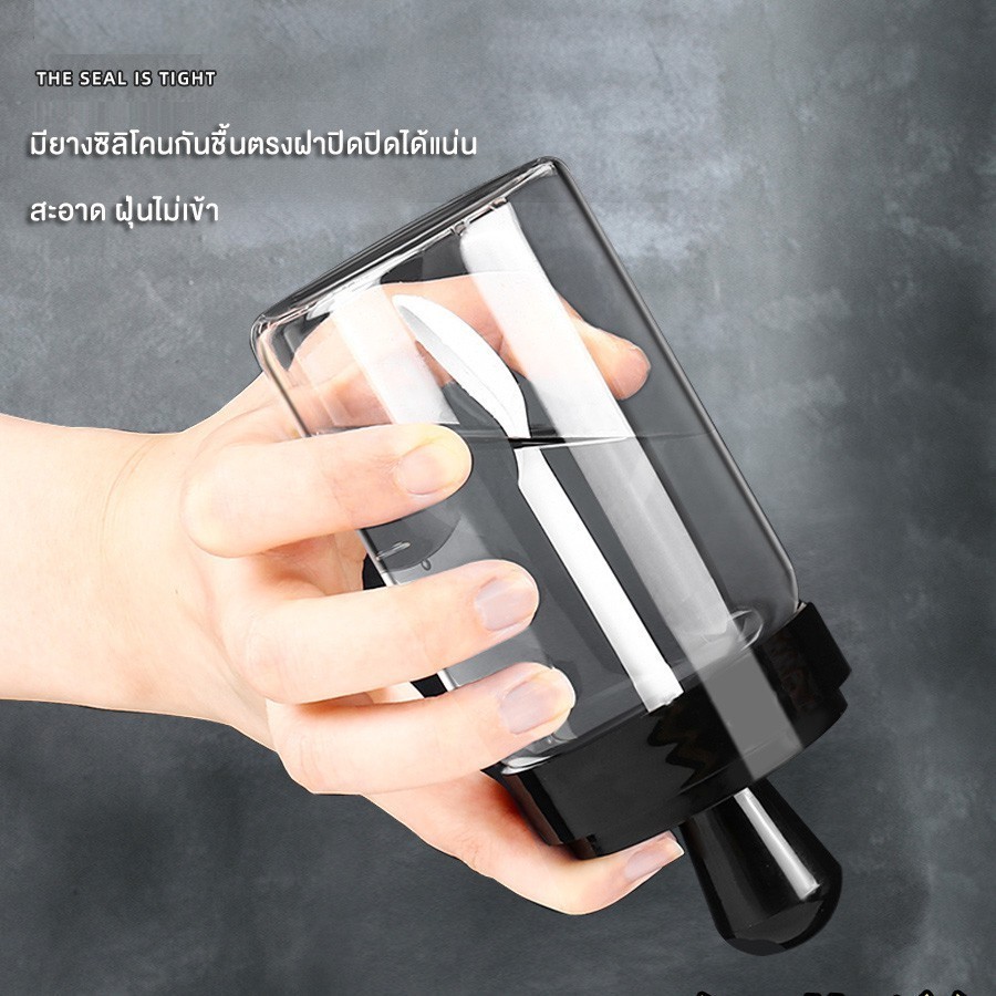 ขวดแก้วใส่เครื่องปรุง พร้อมช้อนตักในตัว ป้องกันความชื้น กันรั่วซึม ขนาด 300ml