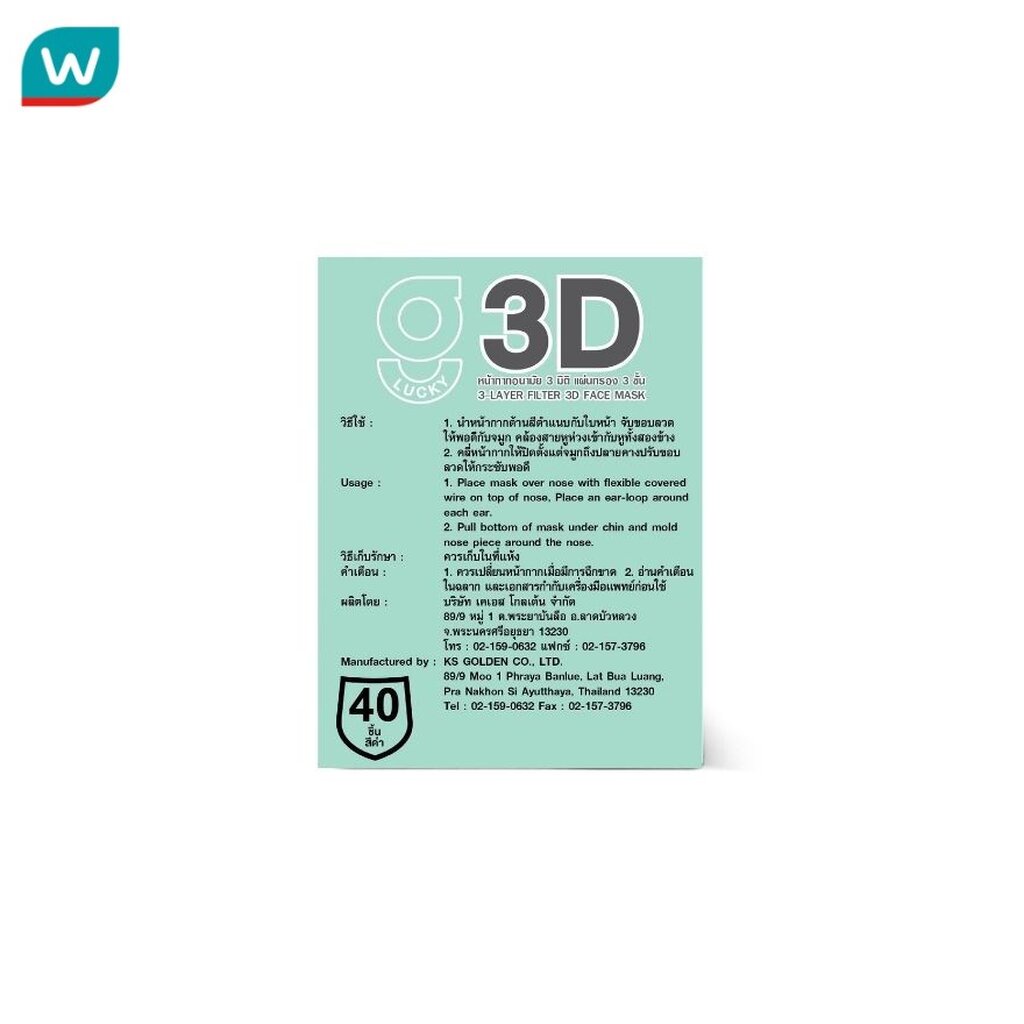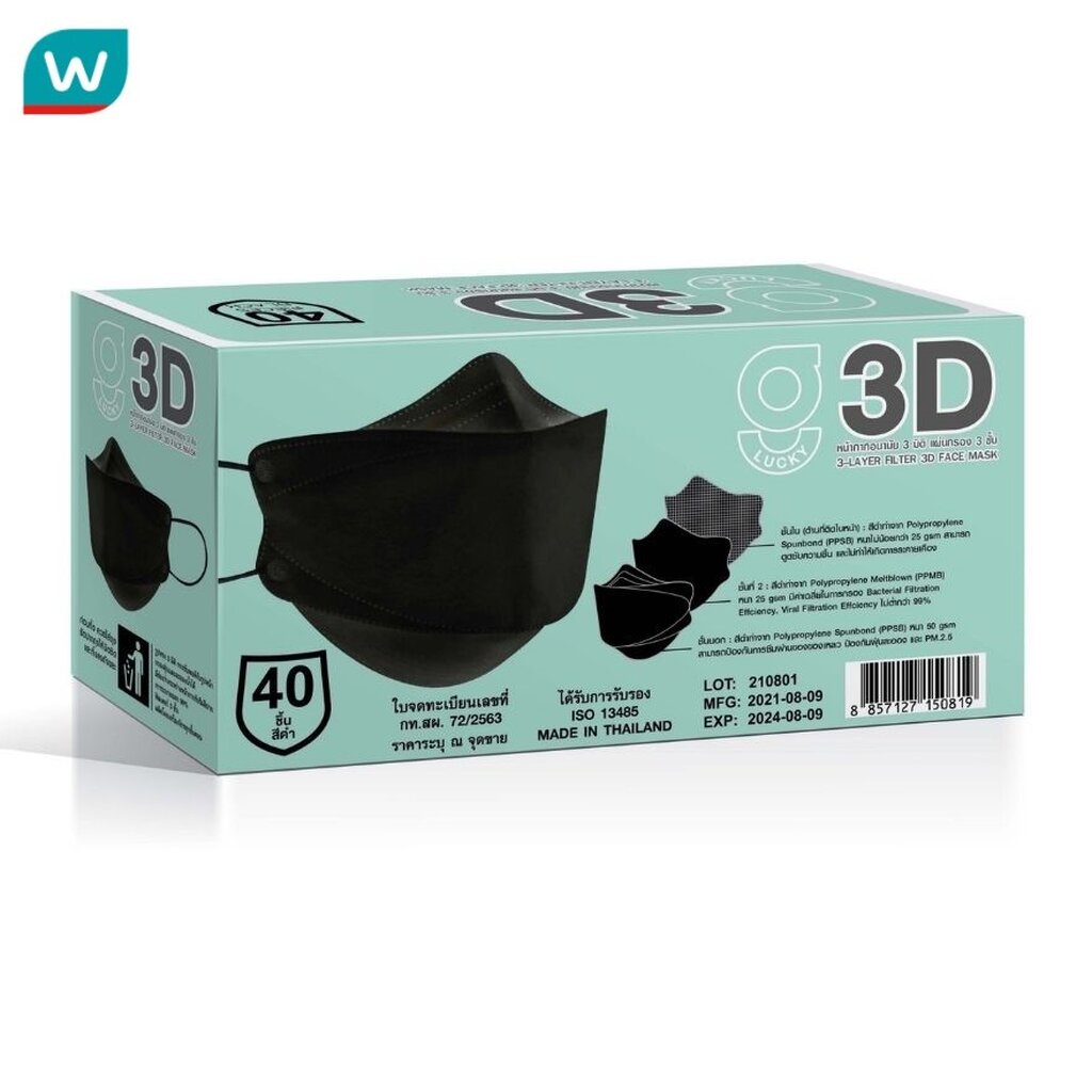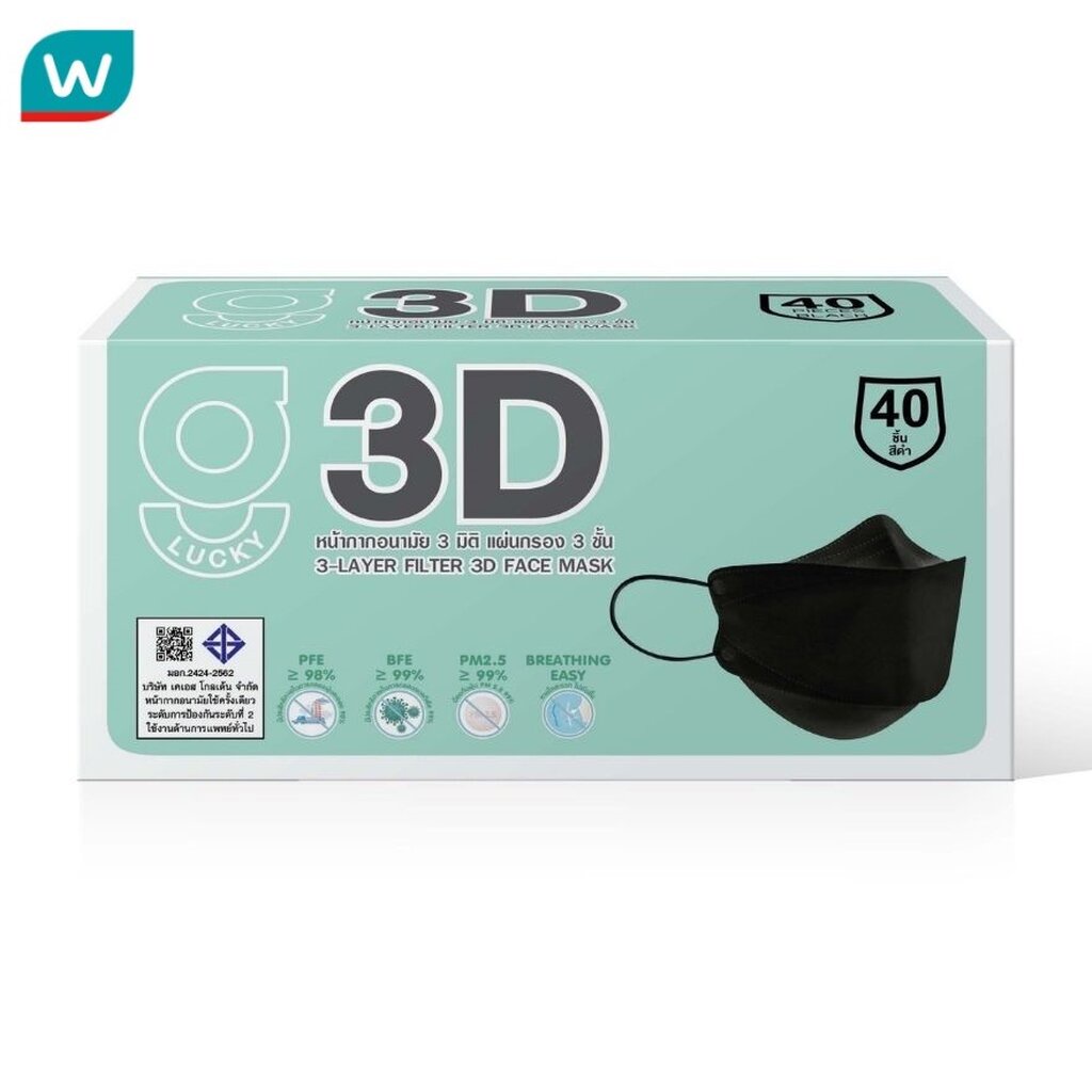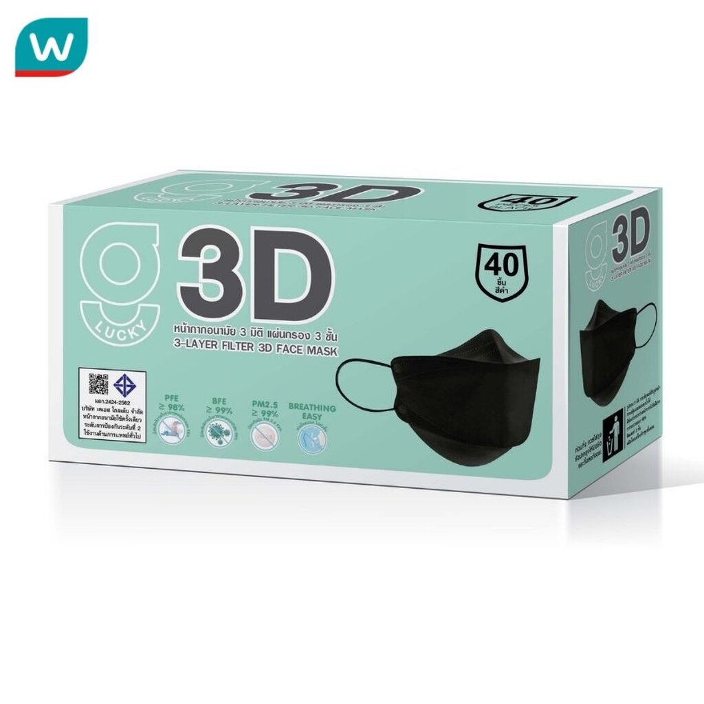 G Lucky 3D จี ลัคกี้ หน้ากากอนามัย 3มิติ สีดำ 40 ชิ้น/กล่อง