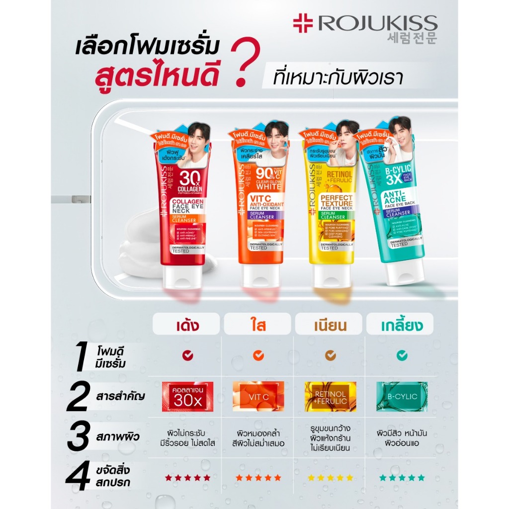 Rojukiss โรจูคิส เซรั่ม คลีนเซอร์ 70 กรัม คอลลาเจน / เพอร์เฟค เทคเจอร์ / วิต ซี แอนตี้-ออกซิแดนท์ / แอนติ-แอคเน่