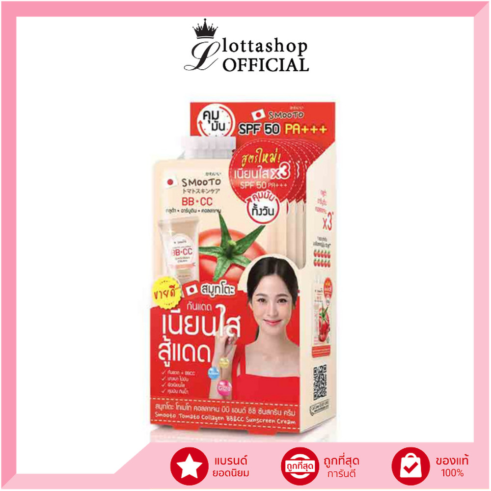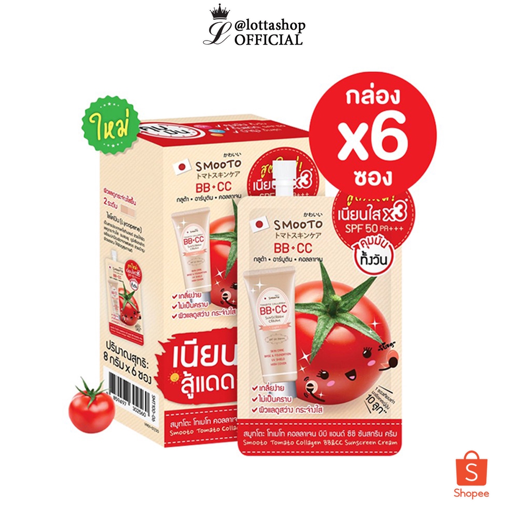 🔥กล่องx6ซอง🔥(SPF50) Smooto Tomato Collagen BB&CC Sunscreen Cream บีบี แอนด์ ซีซี ซันสกรีน ครีม