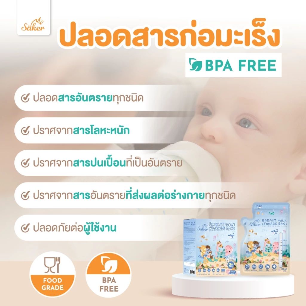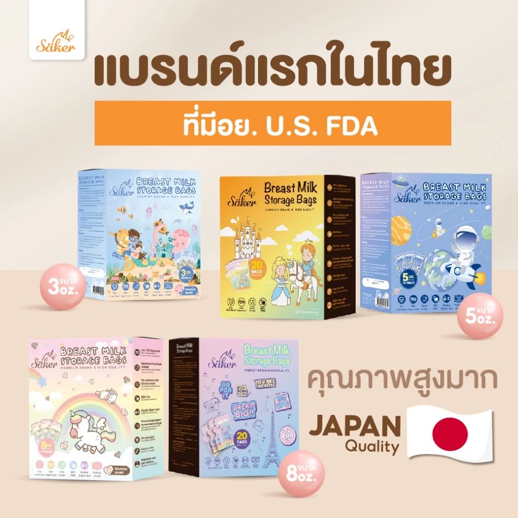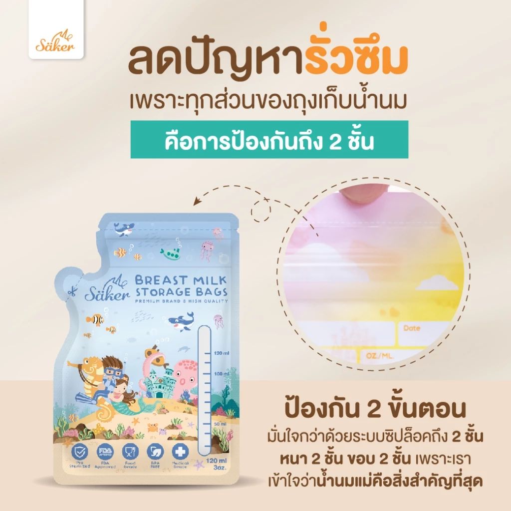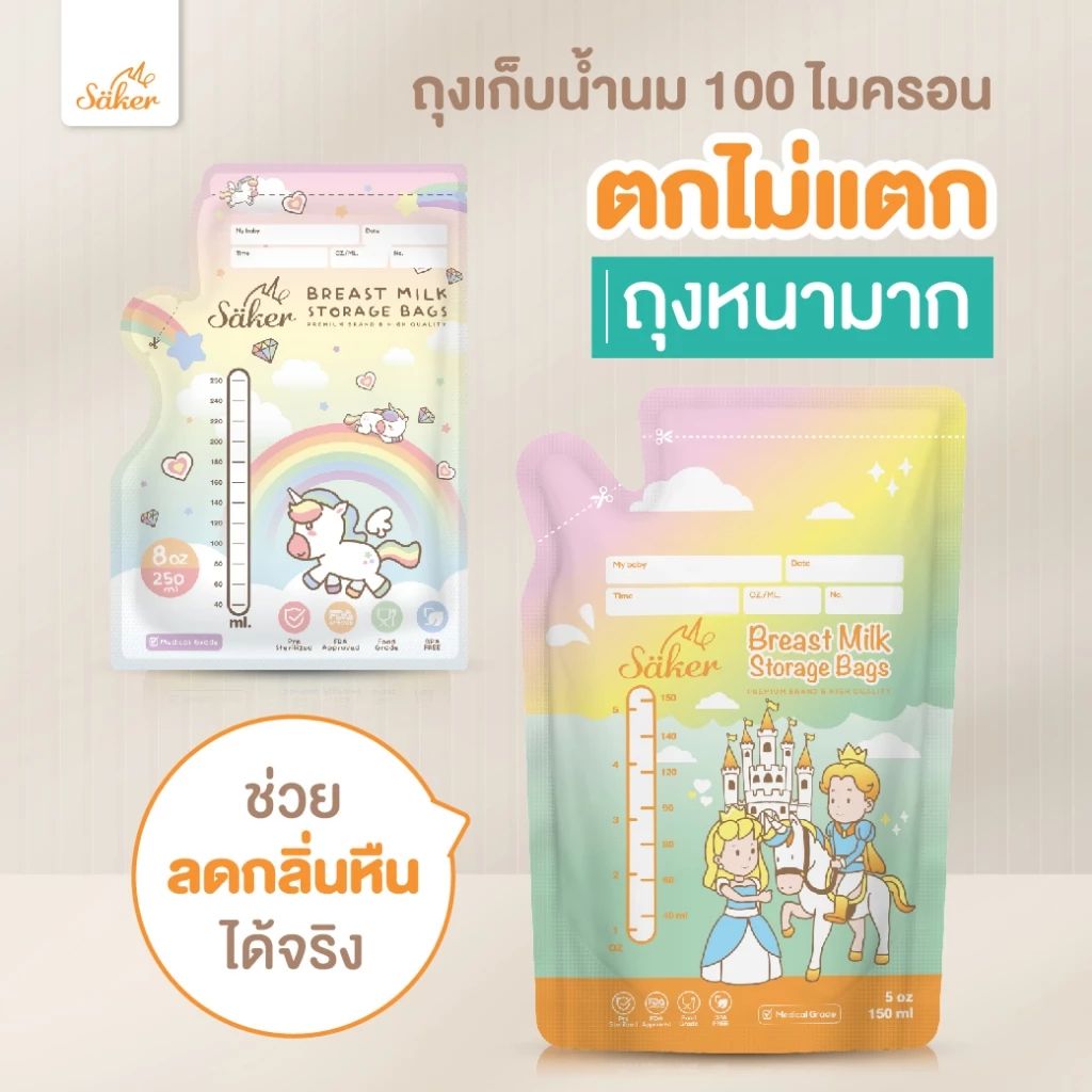 ✨ ถุงเก็บน้ำนม Saker ปลอดเชื้อ U.S. FDA หนา 100ไมครอน มาตรฐานสากล