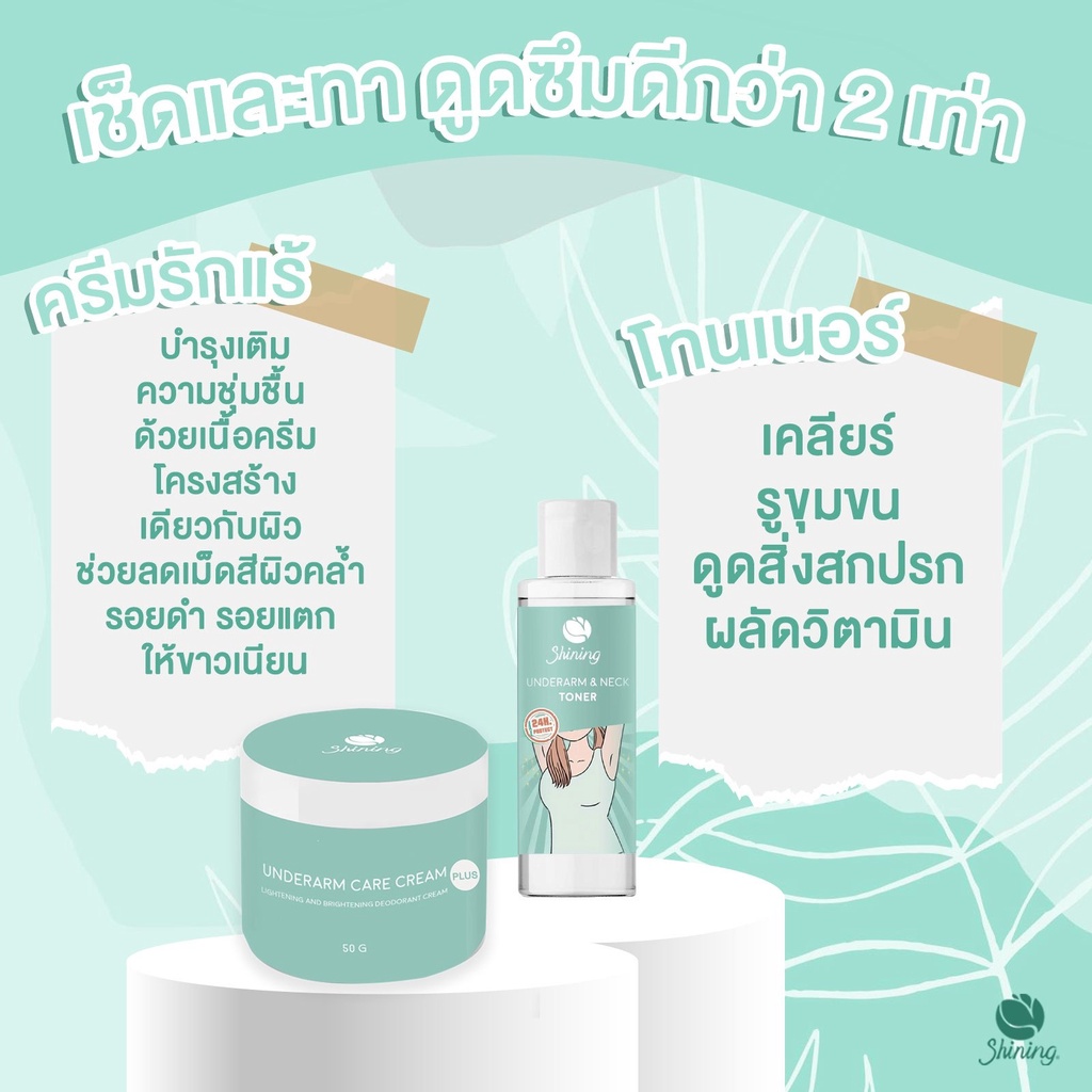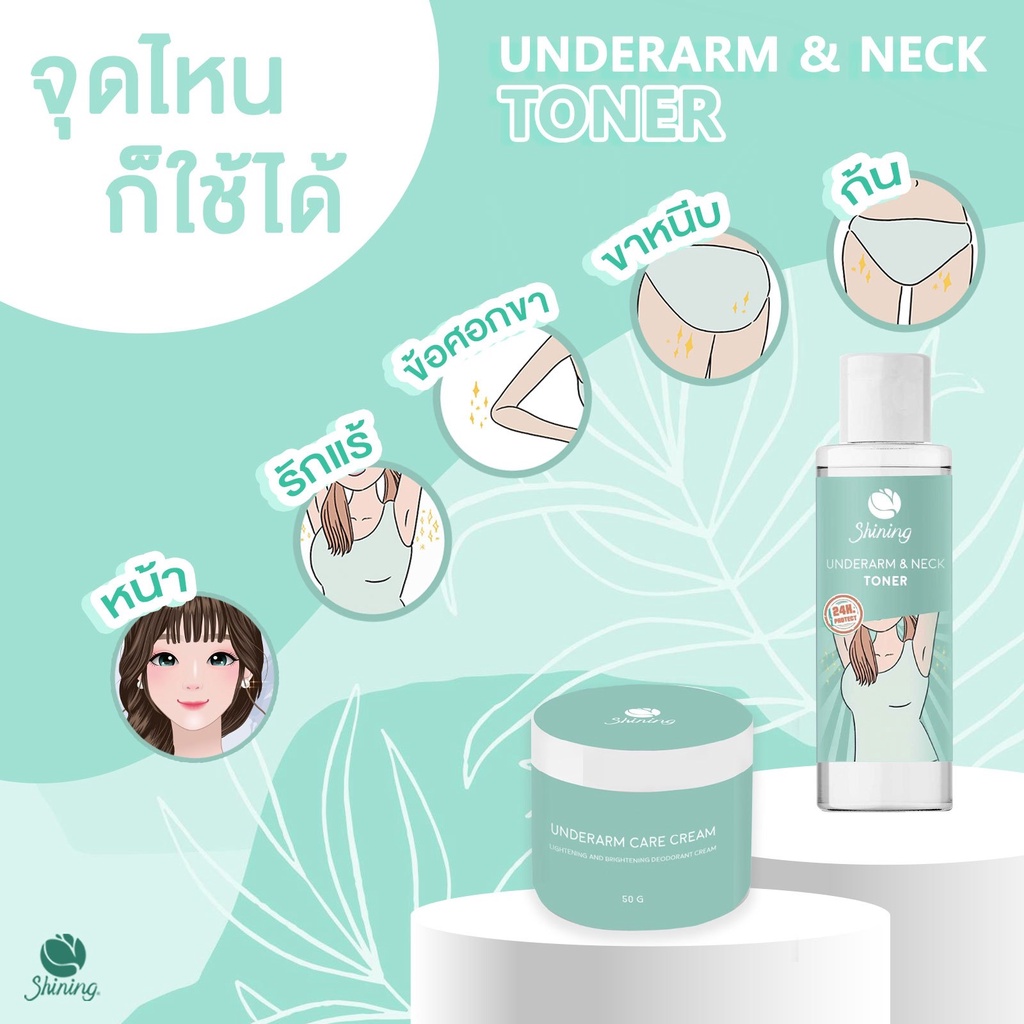 [1 + 1]Shining Underarm Care Cream Toner ชายนิ่ง แคร์ครีม โทนเนอร์ ครีมรักแร้ ใต้วงแขน ขาหนีบ ผิวเนียน กลิ่นตั