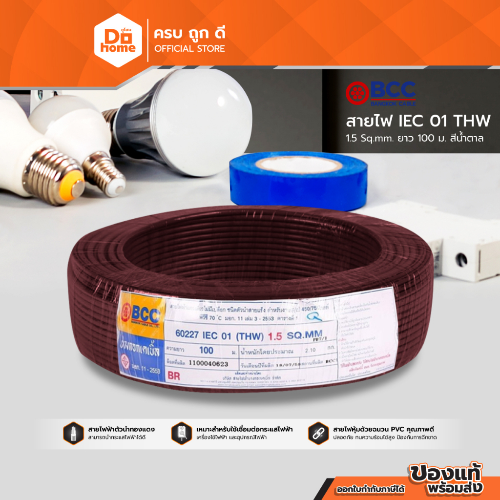 BCC สายไฟ IEC01 (THW) 1x1.5 Sqmm. ยาว 100 เมตร สีน้ำตาล |ROL|