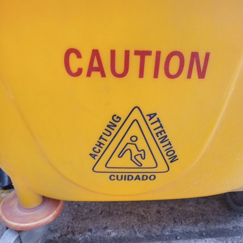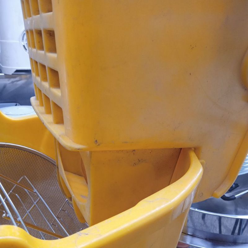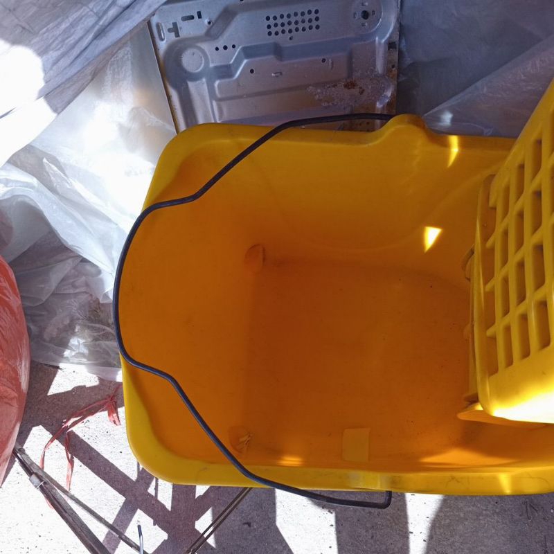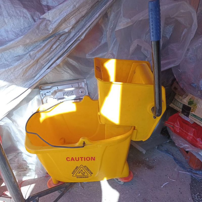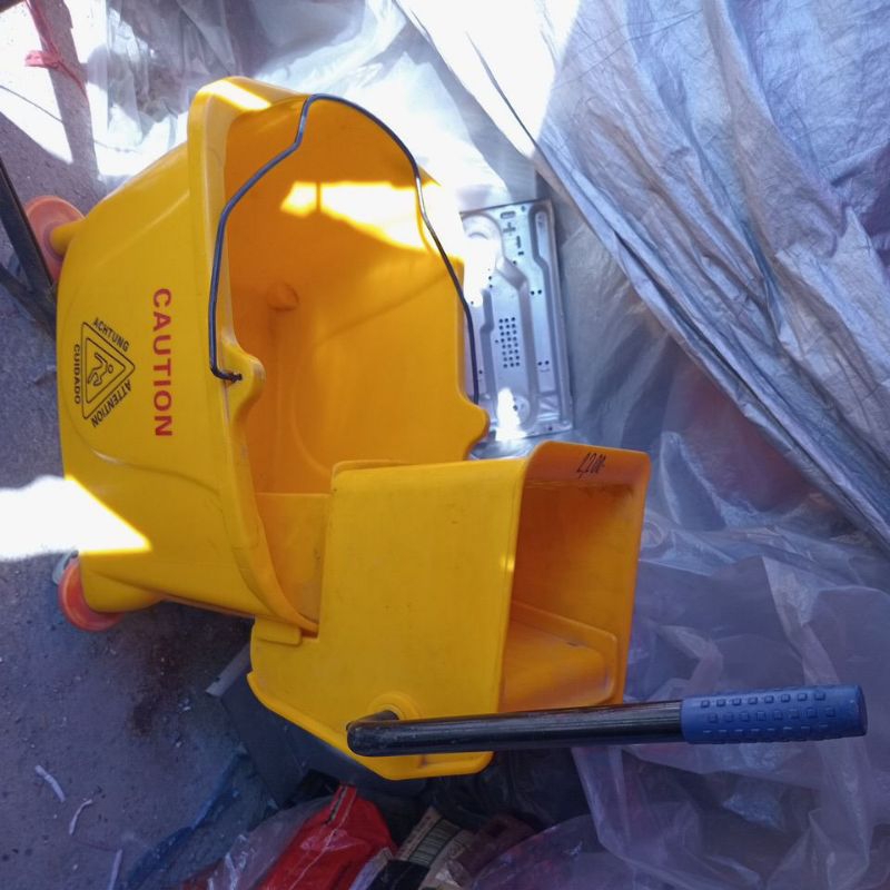 มือสอง ถังบีบไม้ม็อบ ขนาดบรรจุ 36ลิตร,ถัง cuidado caution บอดี้สีเหลือง