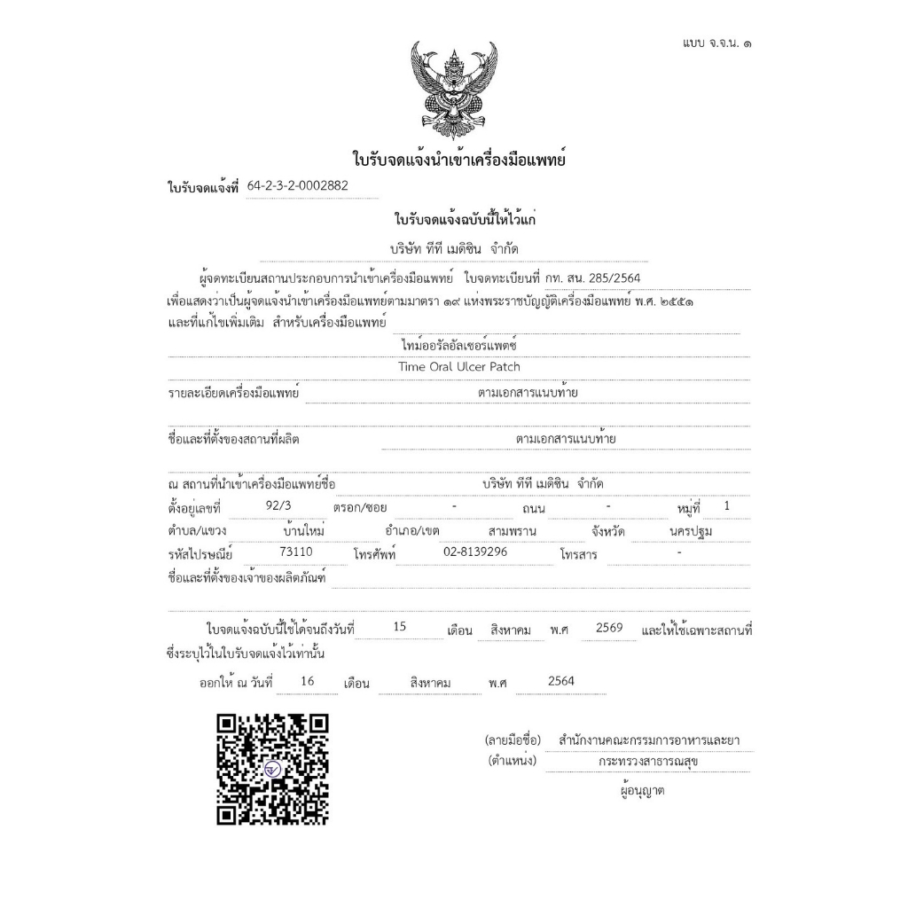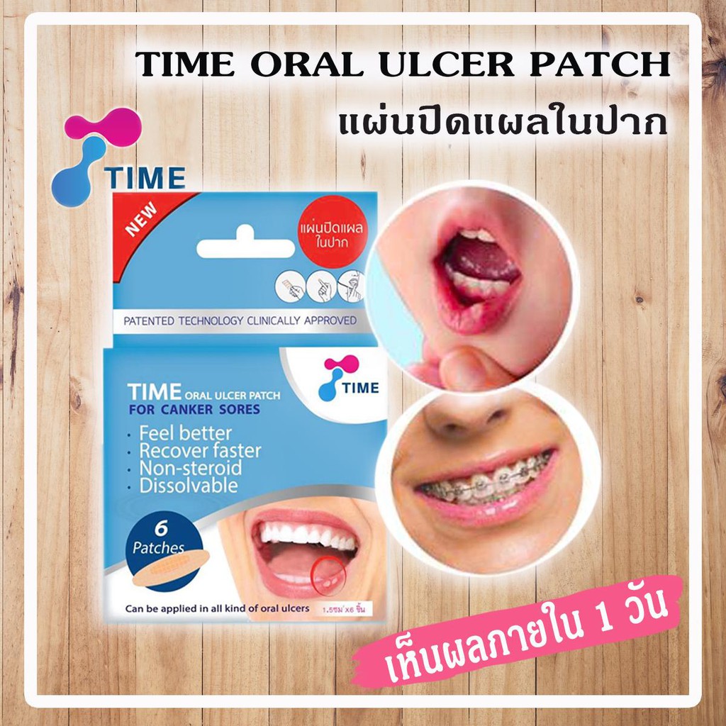 แผ่นแปะแผลร้อนใน TIME ORAL ULCER PATCH 6 ชิ้น แผลในปาก