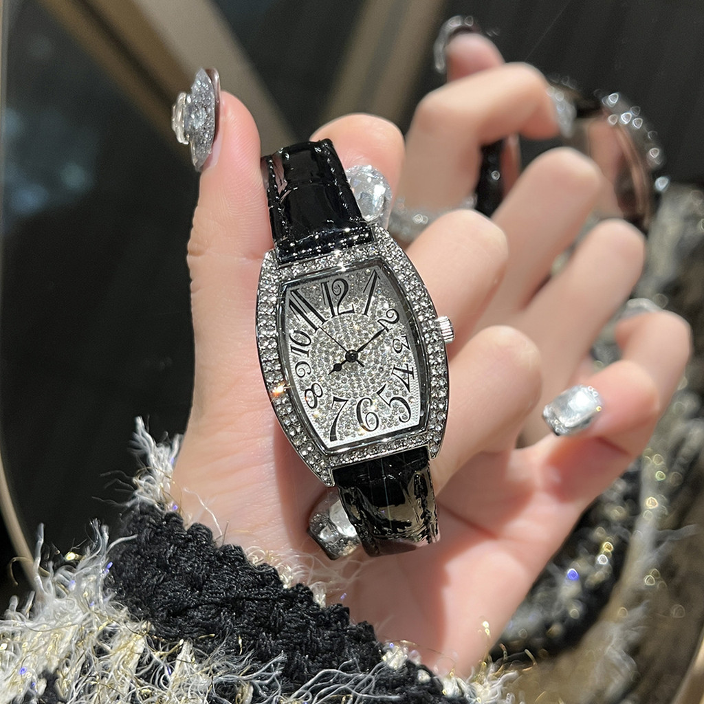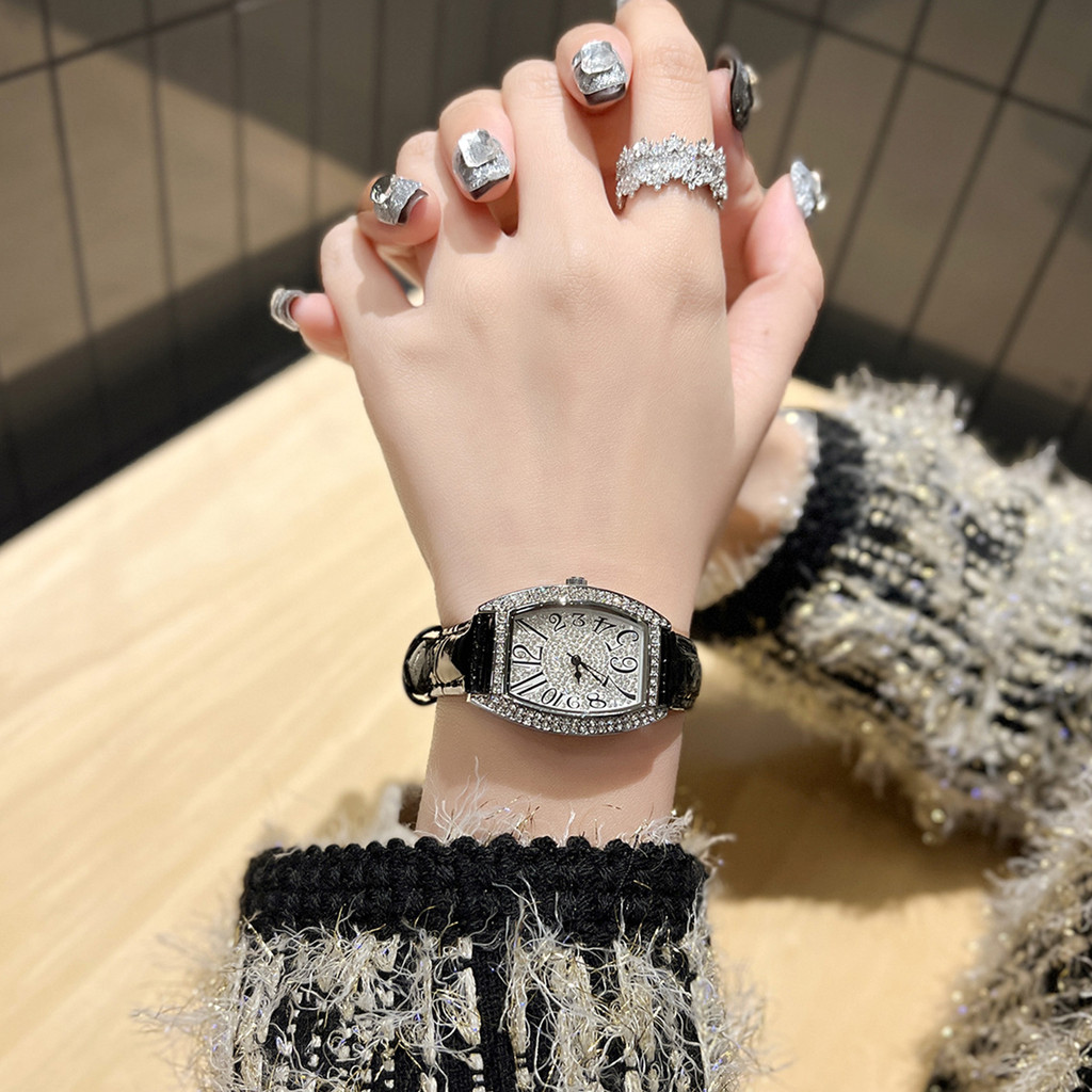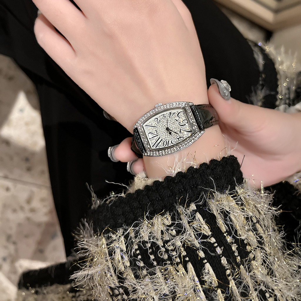 นาฬิกาผู้หญิงหนัง Barrel-Shaped Retro นาฬิกาผู้หญิงแฟชั่นกันน้ํา
