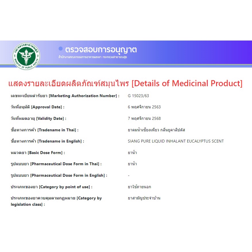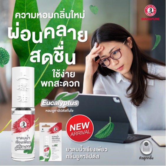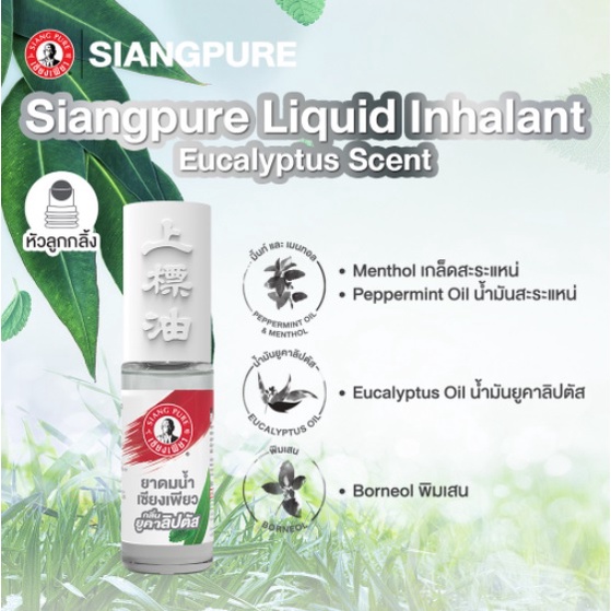 Siang Pure Liquid Inhalant Eucalyptus Scent ยาดมน้ำ เซียงเพียว ยูคาลิปตัส ลูกกลิ้ง ขนาด 3 ซีซี 20707
