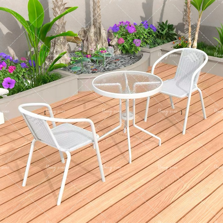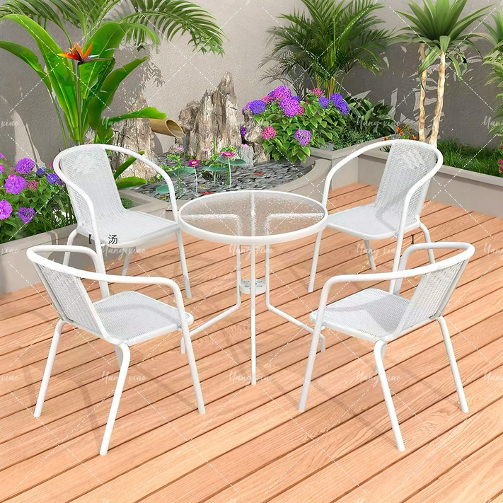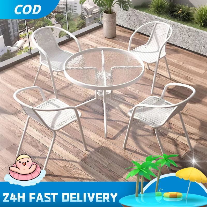 AFISH🐟(Cod)ชุดโต๊ะในสวน โต๊ะชุดรับแขก กันแดดกันน้ำ ทนทาน แข็งแรง โต๊ะกระจกทรงกลม