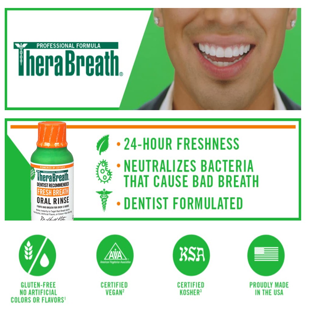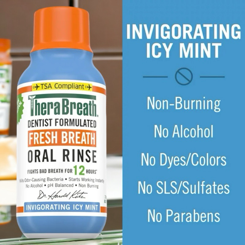 นำเข้า🇺🇸 TheraBreath Travel Size 3.0 fl oz น้ำยาบ้วนปาก สูตรปราศจากแอลกอฮอล์ Fresh Breath Oral Rinse