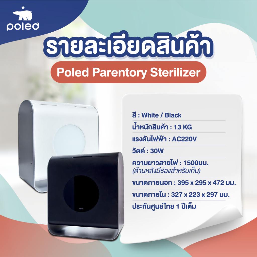 POLED ฆ่าเชื้อด้วยรังสีUVC+อบแห้งแบบไม่ใช้ลมร้อน+ระบายกลิ่นอับ หลอด UV-C 3หลอด ฆ่าเชื้อโรคทุกชนิด