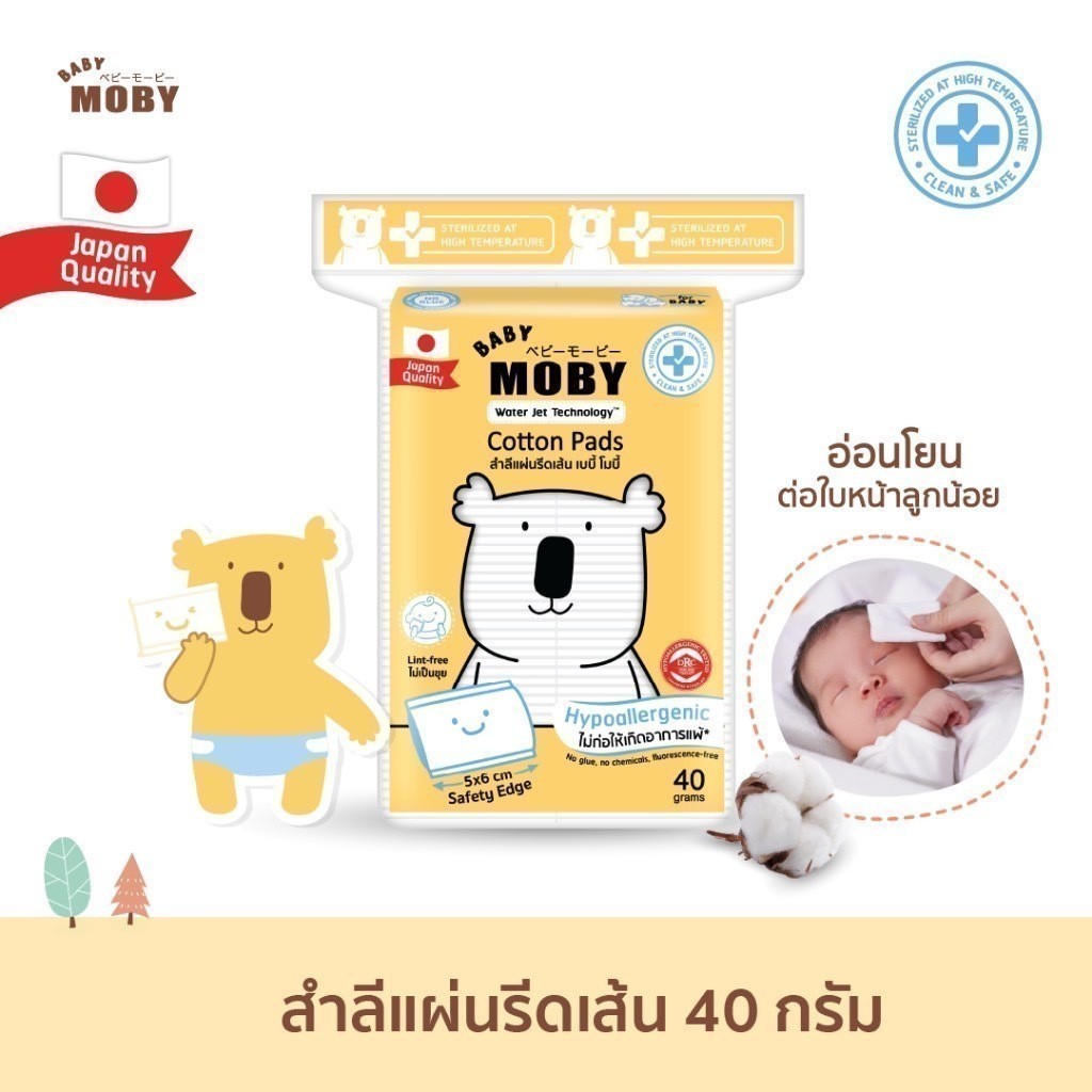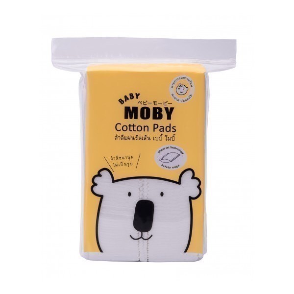 MOBY โมบี้ Cotton Pads สำลีแผ่นเล็กรีดขอบ ไร้กาว ไม่เป็นขุย ปลอดสารเรืองแสง ขนาดบรรจุ 40 กรัม