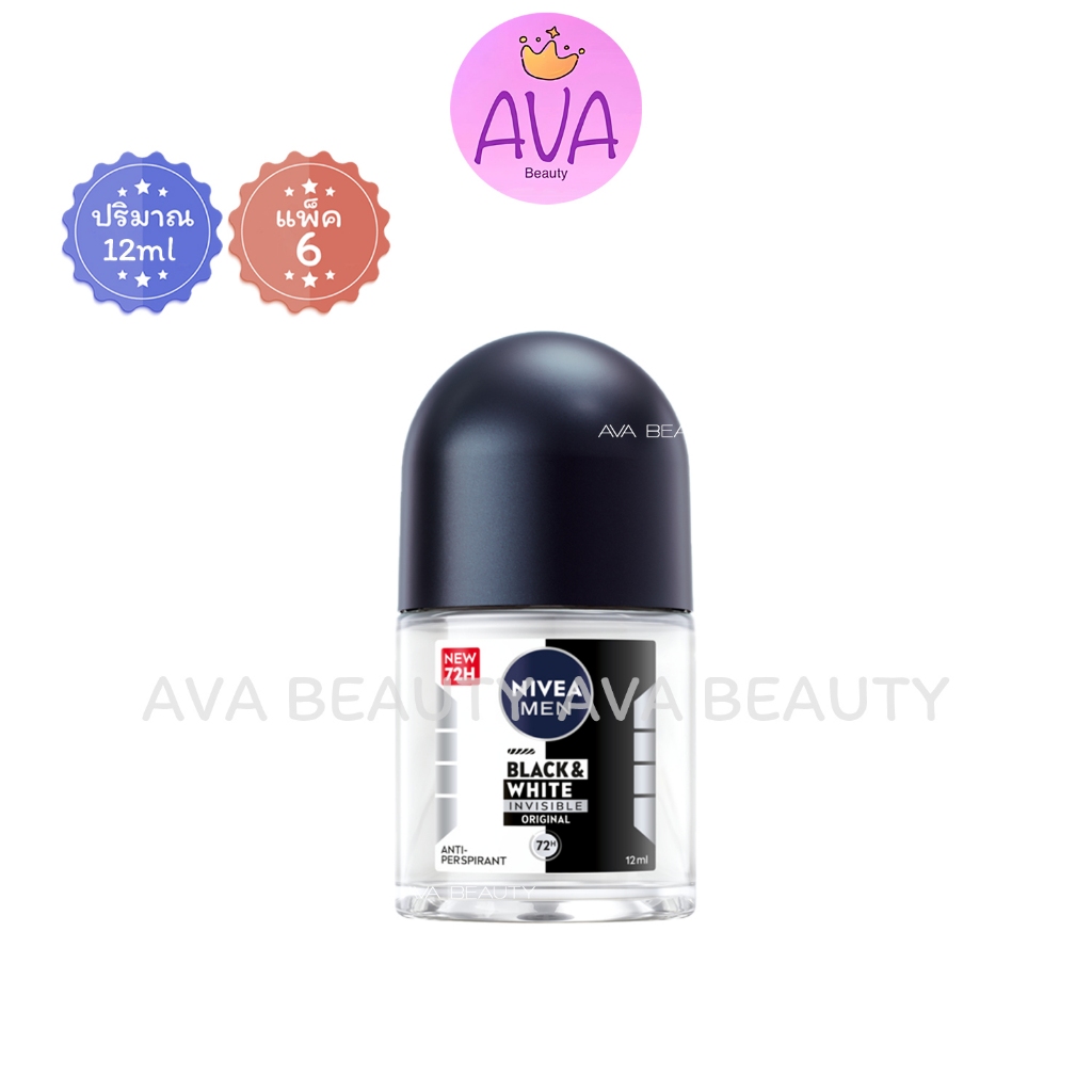 (12ml/แพ็ค6) NIVEA Roll-On Mini Nivea Men นีเวีย โรลออน มินิ ลูกกลิ้ง ระงับกลิ่นกาย แพ็ค6ขวด