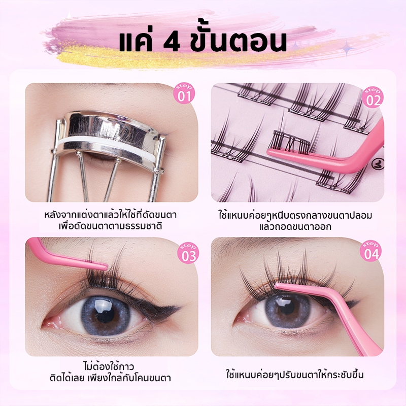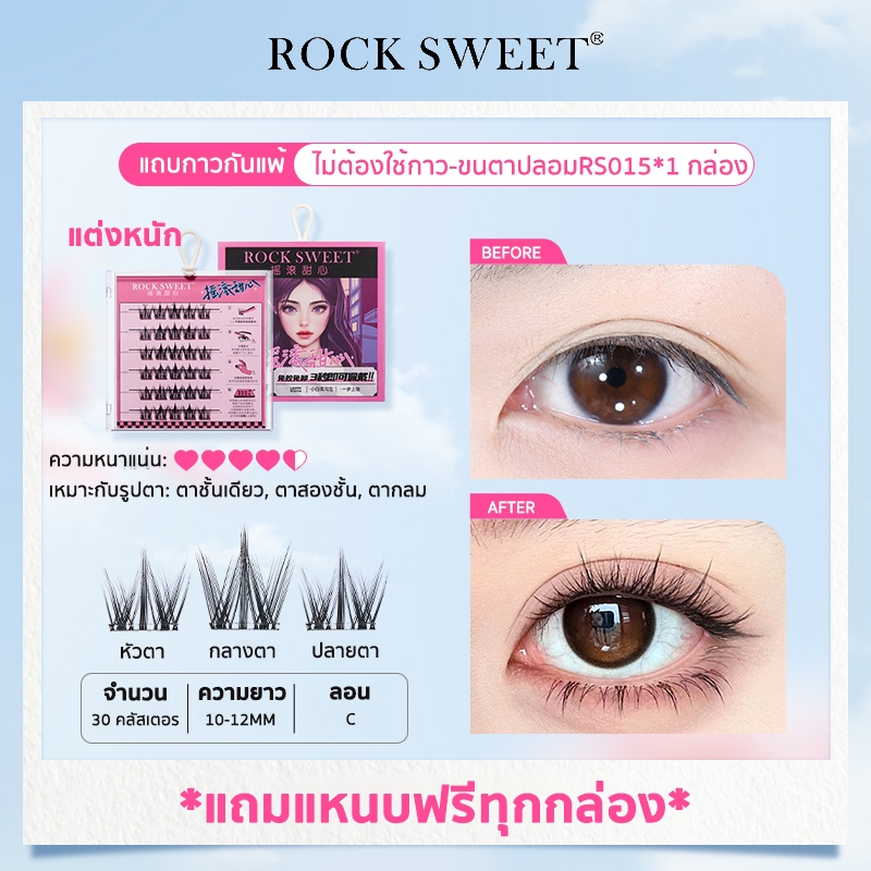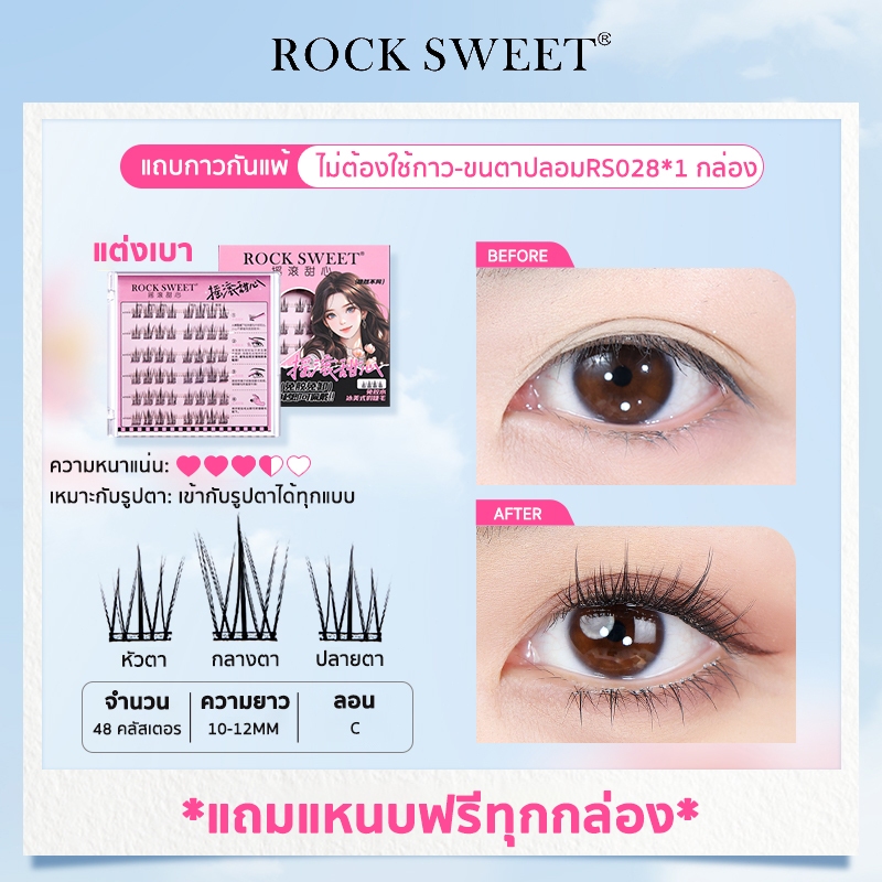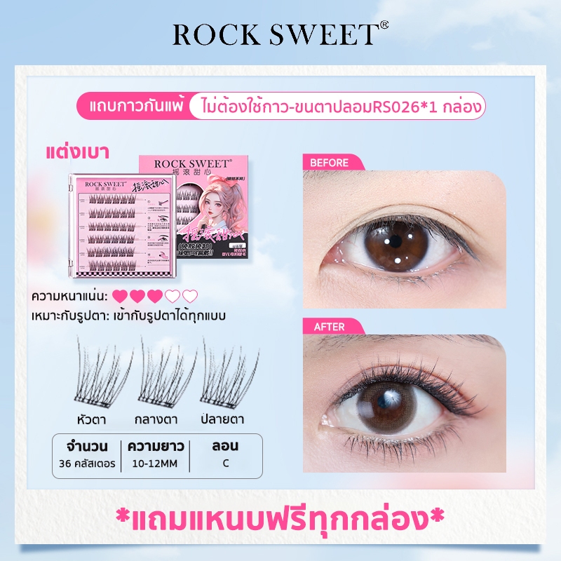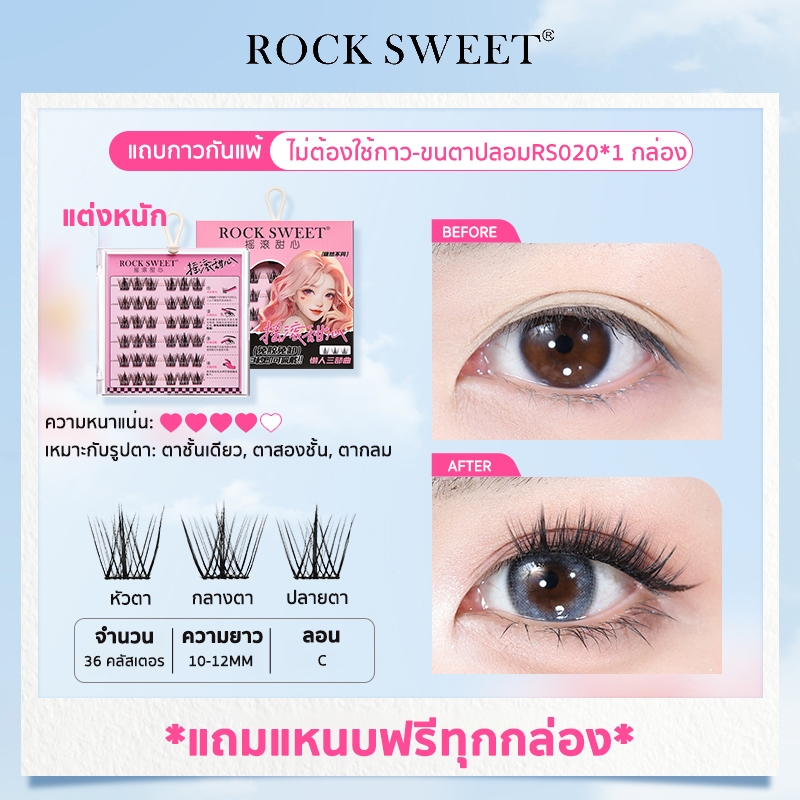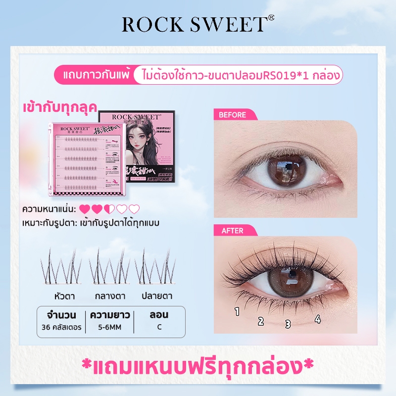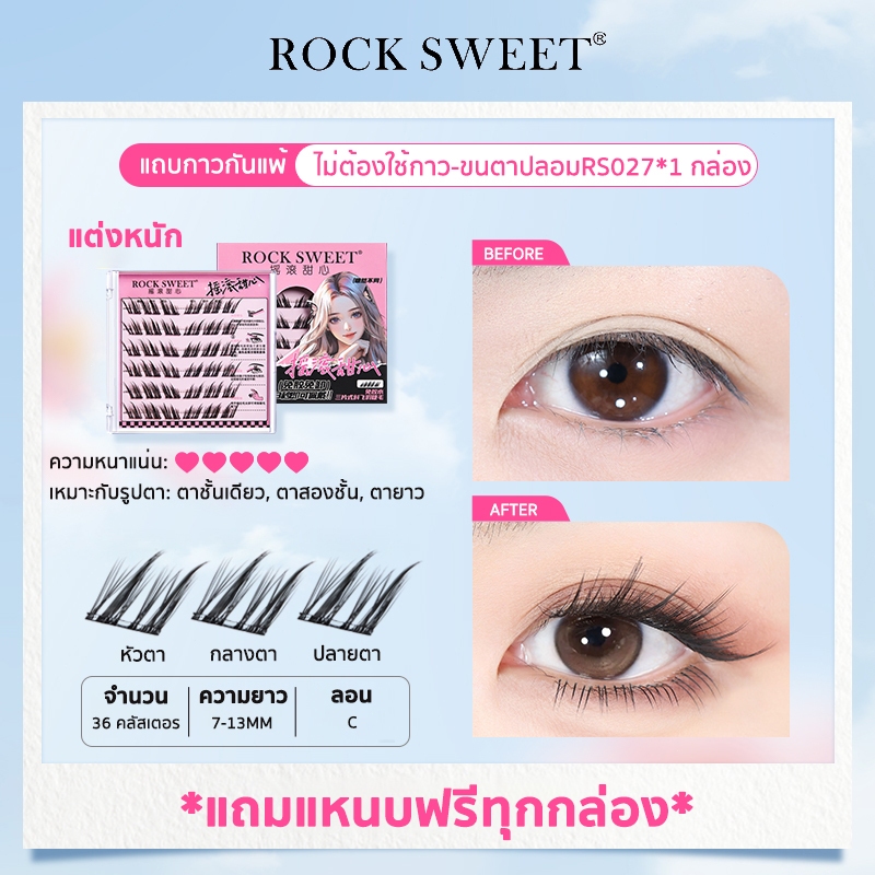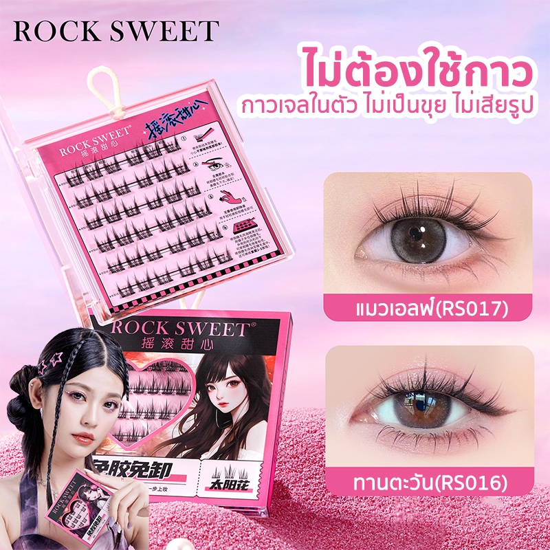 ROCK SWEET ขนตาปลอมมีกาวในตัว 5D ไม่ต้องใช้กาว ขยายตา ติดทน ใช้ซ้ำได้ เหมาะสำหรับมือใหม่ 36 ช่อ/กล่อง แหนบฟรี