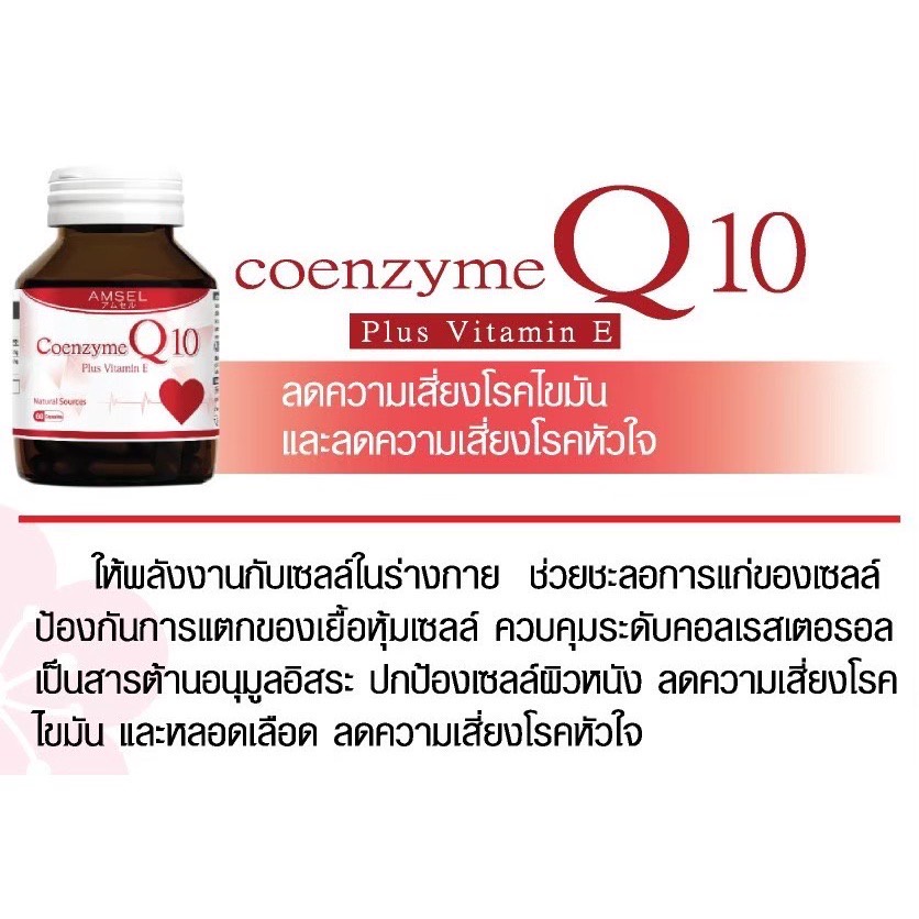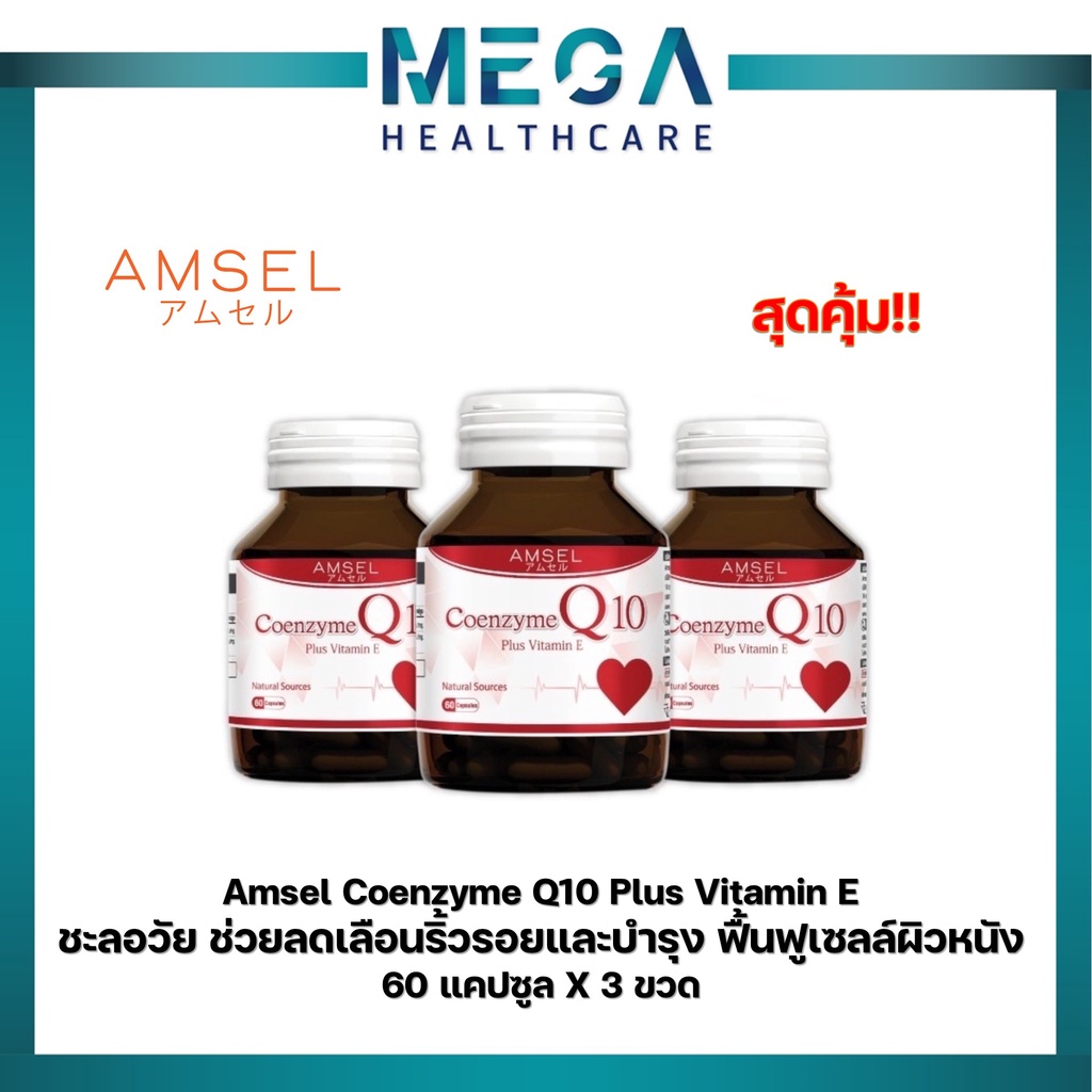 [3 ขวดx60 แคปซูล] Amsel Coenzyme Q10 Plus Vitamin E แอมเ ซล โคเอนไซม์ คิวเท็น พลัส วิตามินอี