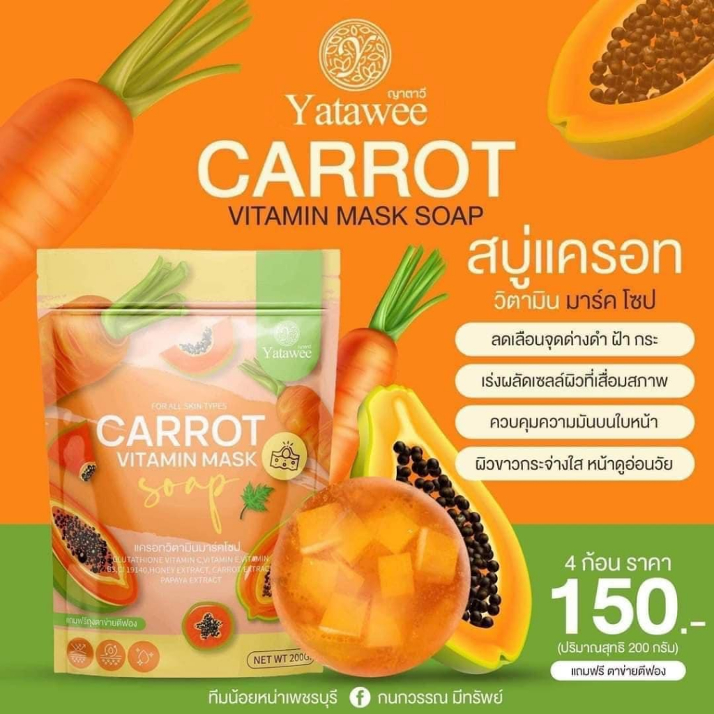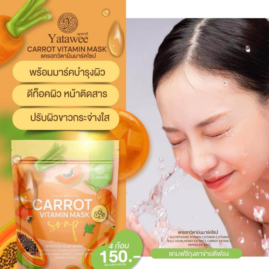 สบู่แครอทวิตามินมาร์คโซป ญาตาวี Carrot Vitamin Mask Soap YATAWEE