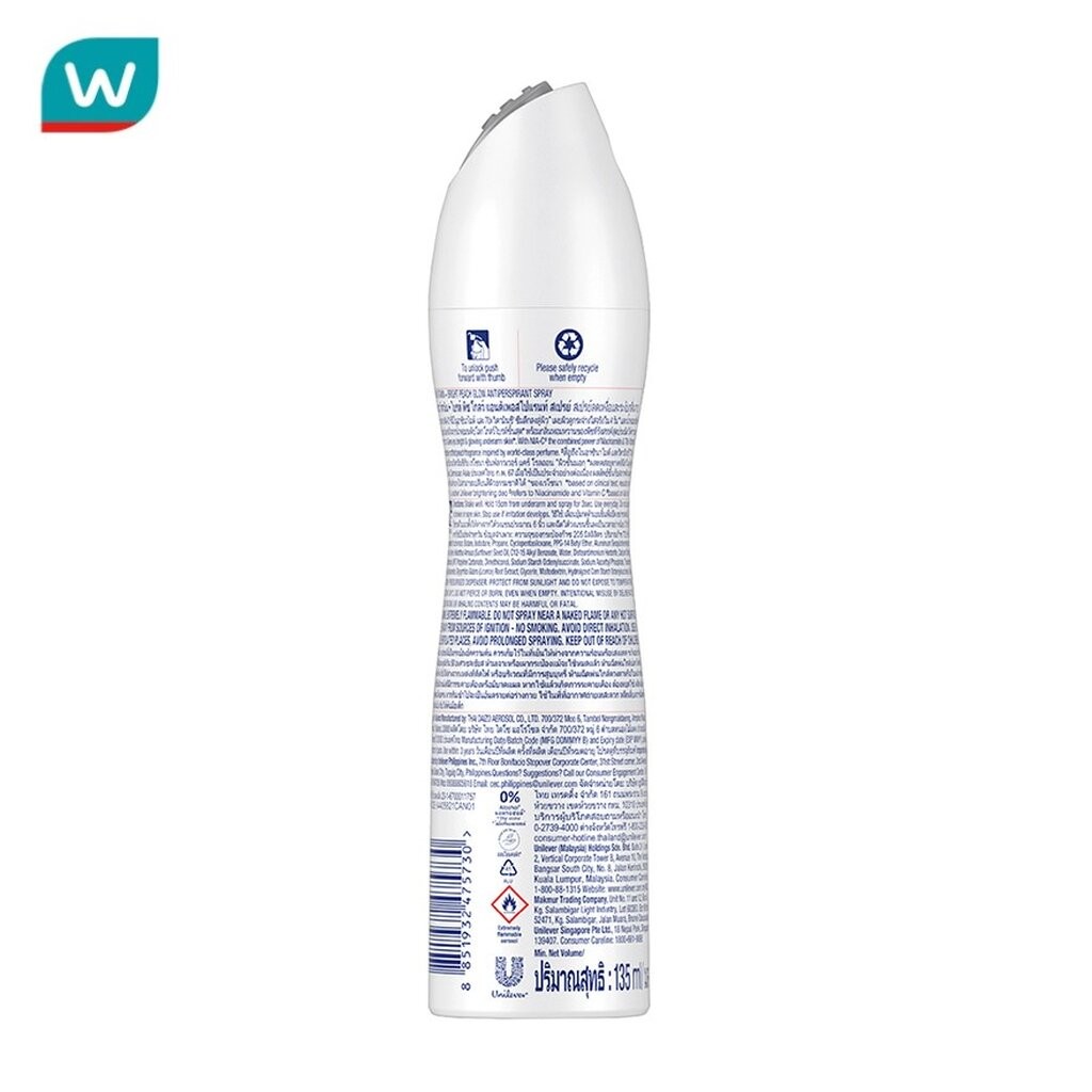 Rexona เรโซนา สเปรย์ วิตามิน + ไบรท์ พีช โกลว์ แอนติเพอสไปแรนท์ 135 มล.