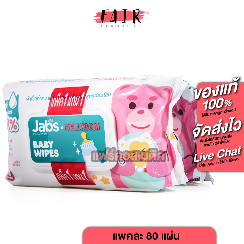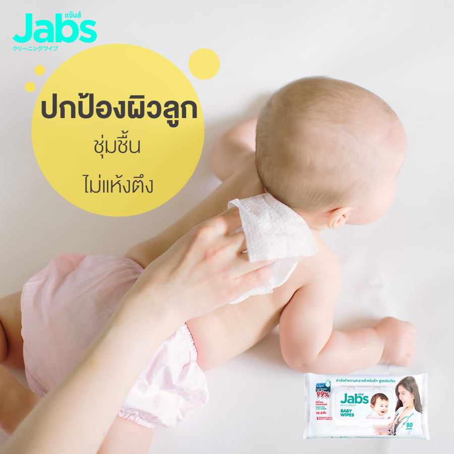 [1 แถม 1][แพคใหญ่ 80 แผ่น] Jabs Baby Wipes แจ๊บส์ เบบี้ ไวพ์ ผ้าเช็ดทำความสะอาด สำหรับเด็ก สูตรอ่อนโยน