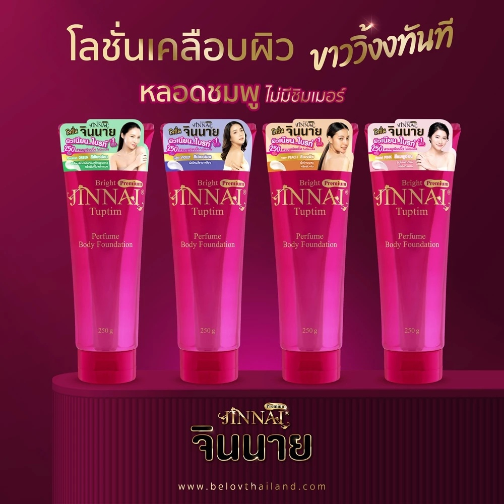 (แพ็คเกจใหม่) JINNAI จินนายโลชั่น เคลือบผิวขาว หลอดชมพูไม่มีชิมเมอร์ #ชมพูเนียนปิ๊ง (80 g.)
