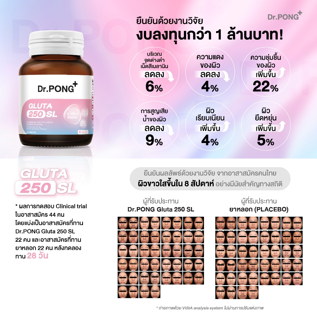 SET x3 กระปุก Dr.PONG Special Set Gluta 250 X3 กลูตาไธโอนเพื่อผิวกระจ่างใส สำหรับอมใต้ลิ้น ผิวขาว