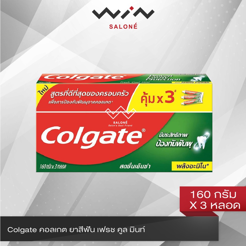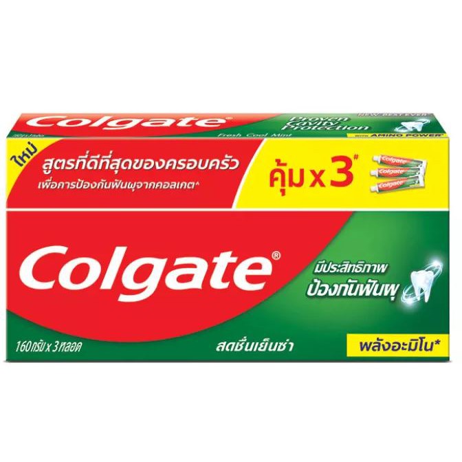 Colgate คอลเกต ยาสีฟัน เฟรช คูล มินท์ 160 กรัม X 3 หลอด สดชื่นเย็นซ่า ยาสีฟันป้องกันฟันผุ