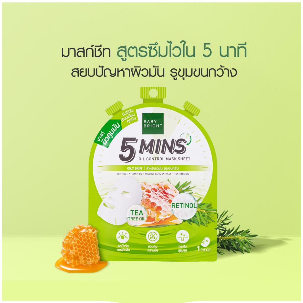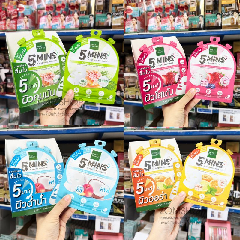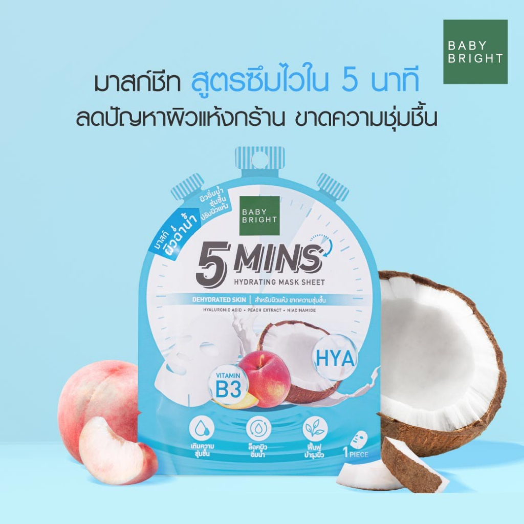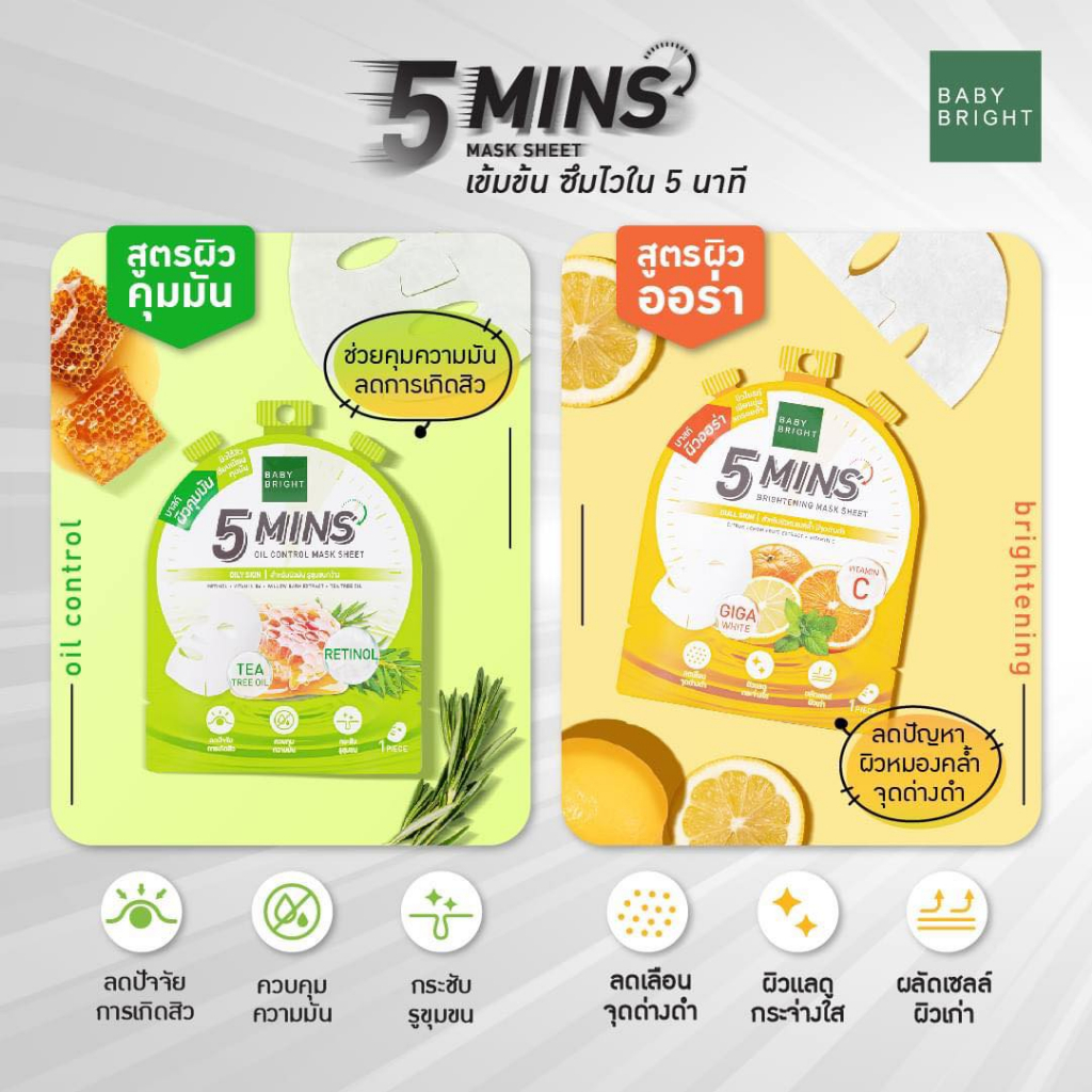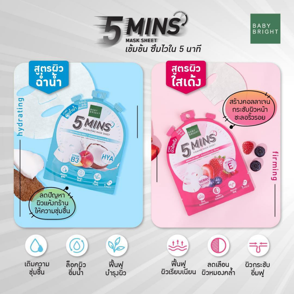 【1ชิ้น】แผ่นมาส์กหน้า【ไฟว์มินิทส์มาสก์ชีท】BABY BRIGHT 5 MINS MARK SHEET 18g.【รวมทุกสูตร】