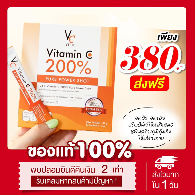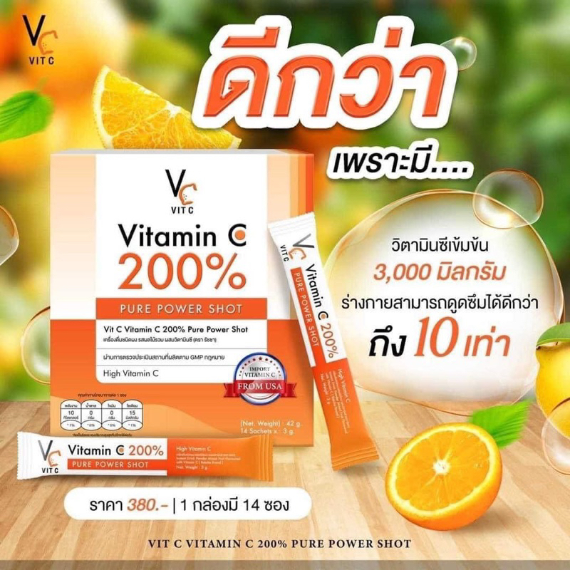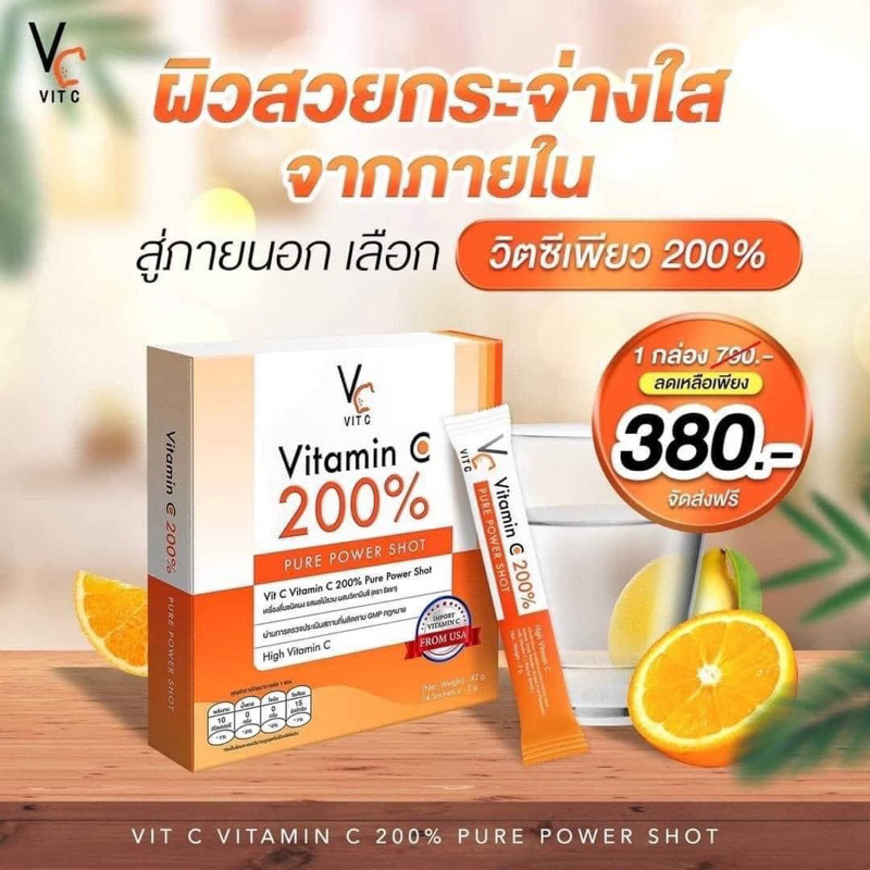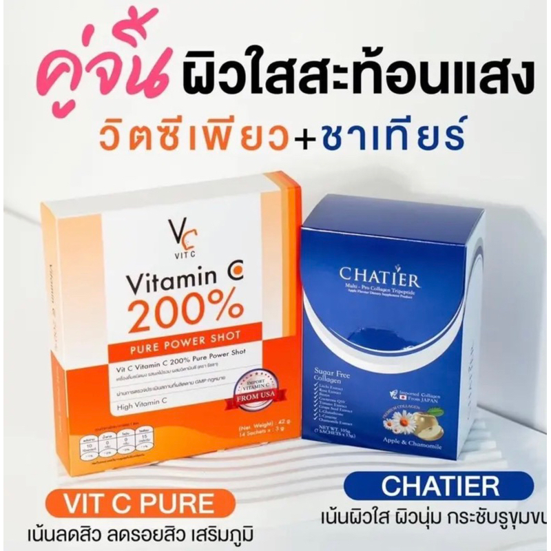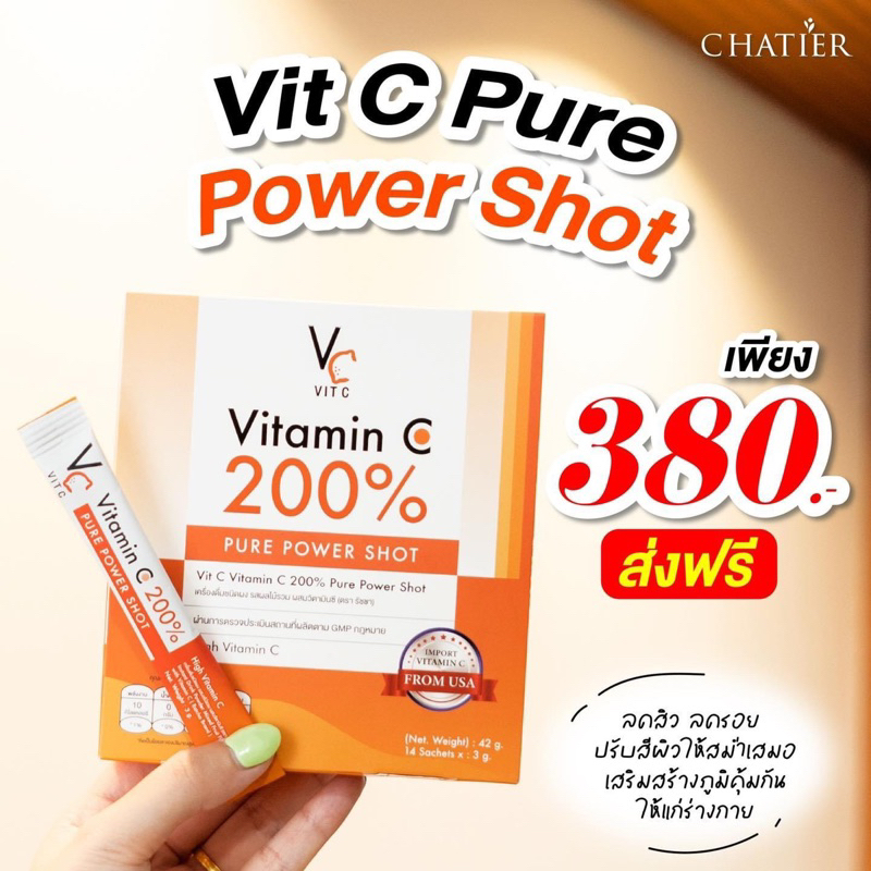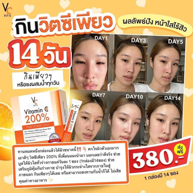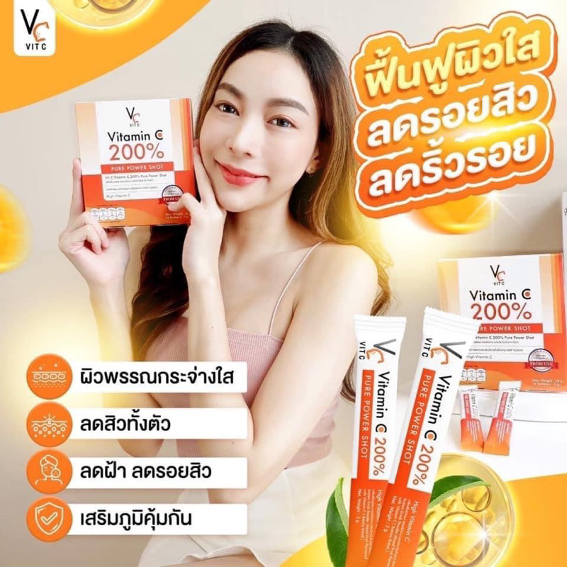 (🍊พร้อมส่ง | ส่งฟรี❗️) แท้💯 วิตซีเพียว รัชชา Vitamin C 200% 14ซอง/กล่อง วิตามินซี คอลลาเจนชาเทียร์ ลดสิว ผิวใส ลดรอยสิว