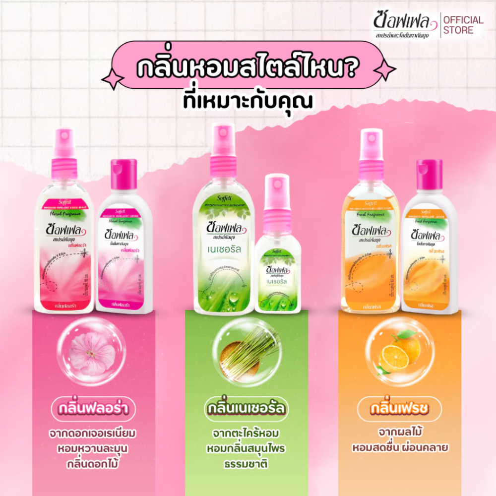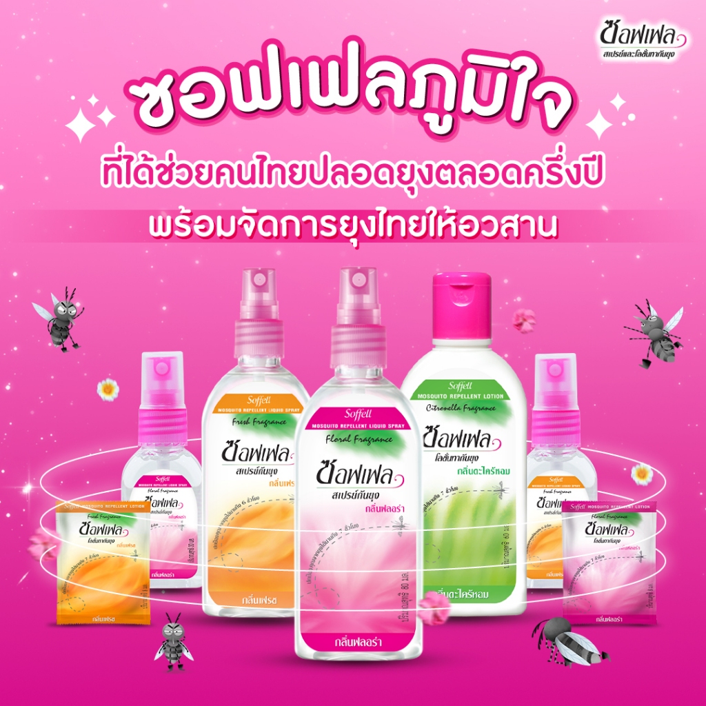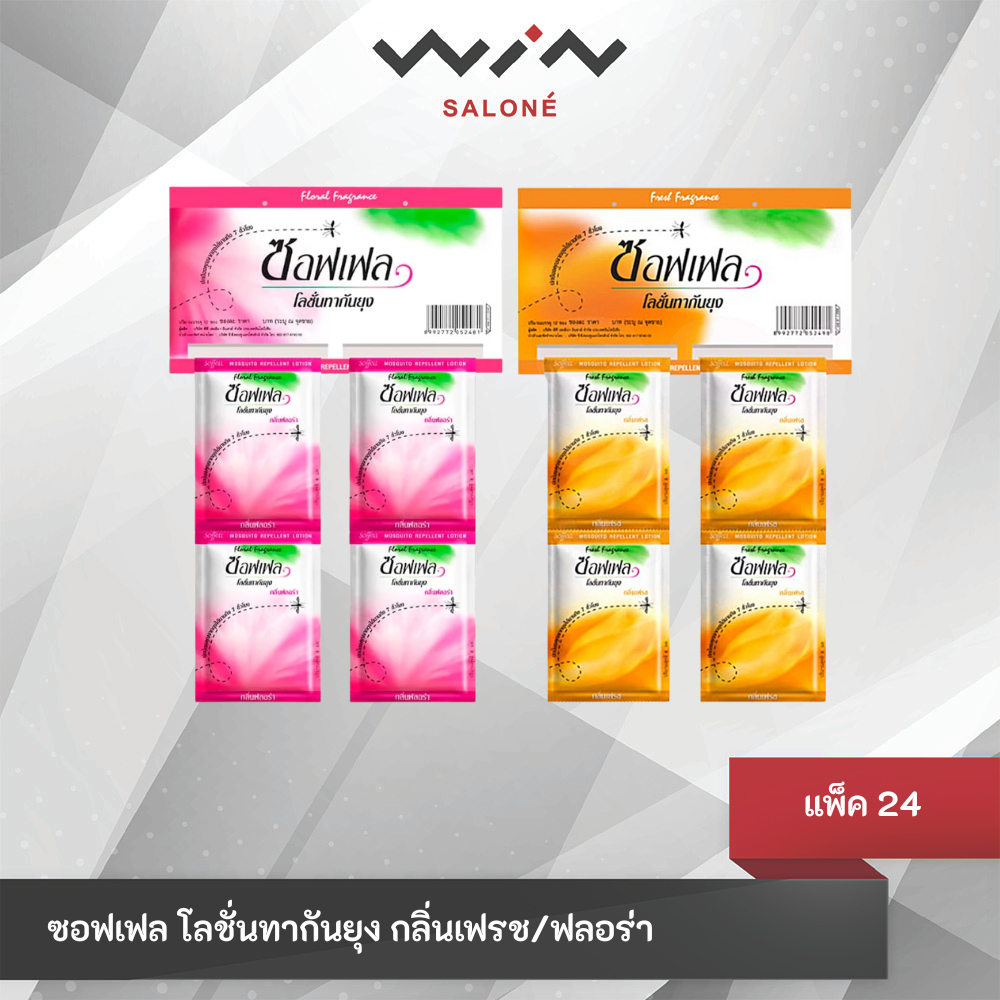 [แพ็ค 24 ซอง] Soffell ซอฟเฟล โลชั่น กลิ่นฟลอร่า/เฟรช แบบซอง 8ml. โลชั่นกันยุง