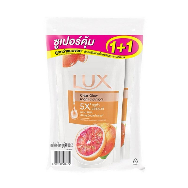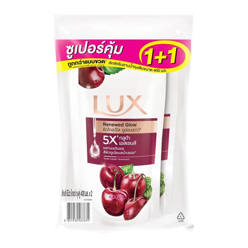 Lux ลักส์ ครีมอาบน้ำ รุ่นถุงเติมแถมถุงเติม ขนาด 350-400มล. (แพ็คคู่)