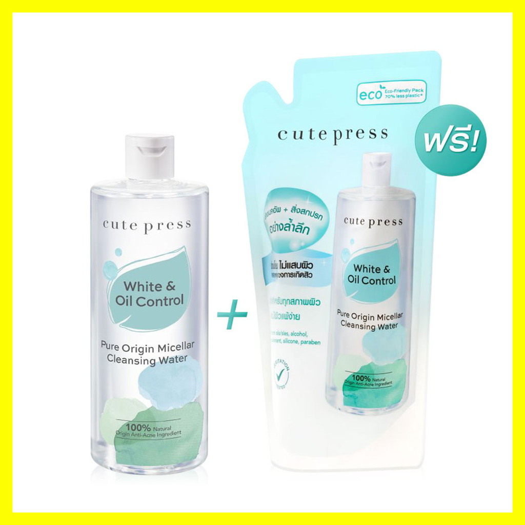 Cute Press Pure Origin Micellar Cleansing Water 500ml + Refill 500ml คลีนซิ่งสูตรน้ำ พร้อมรีฟิล.