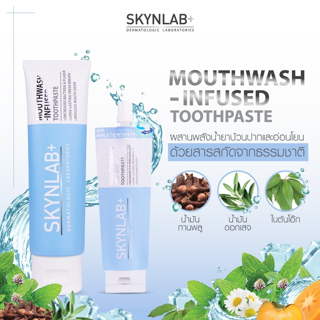 โปรโมชั่น สูตรผสมน้ำยาบ้วนปาก Skynlab Mouthwash Infused ยาสีฟันแบบซอง ปริมาณ 12g.
