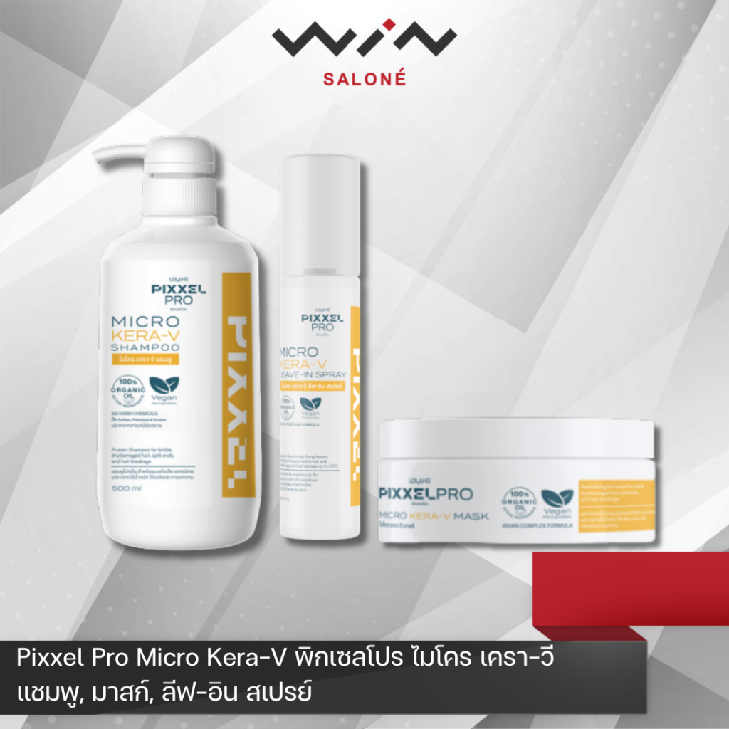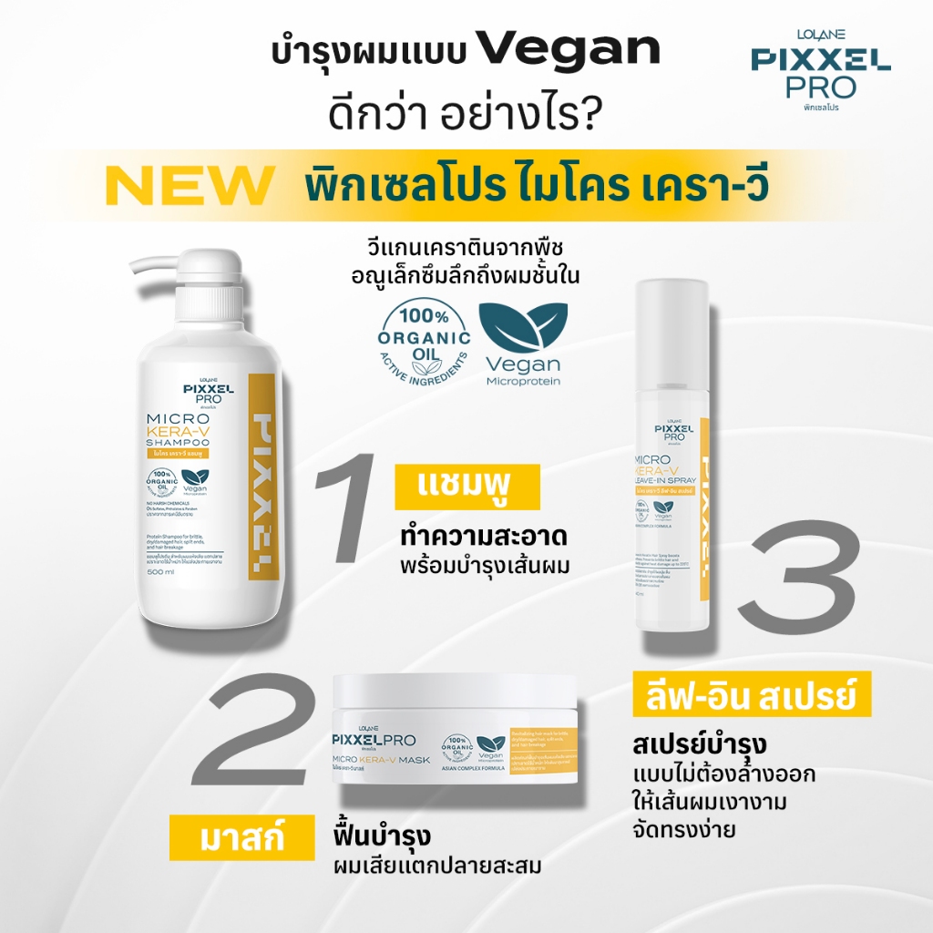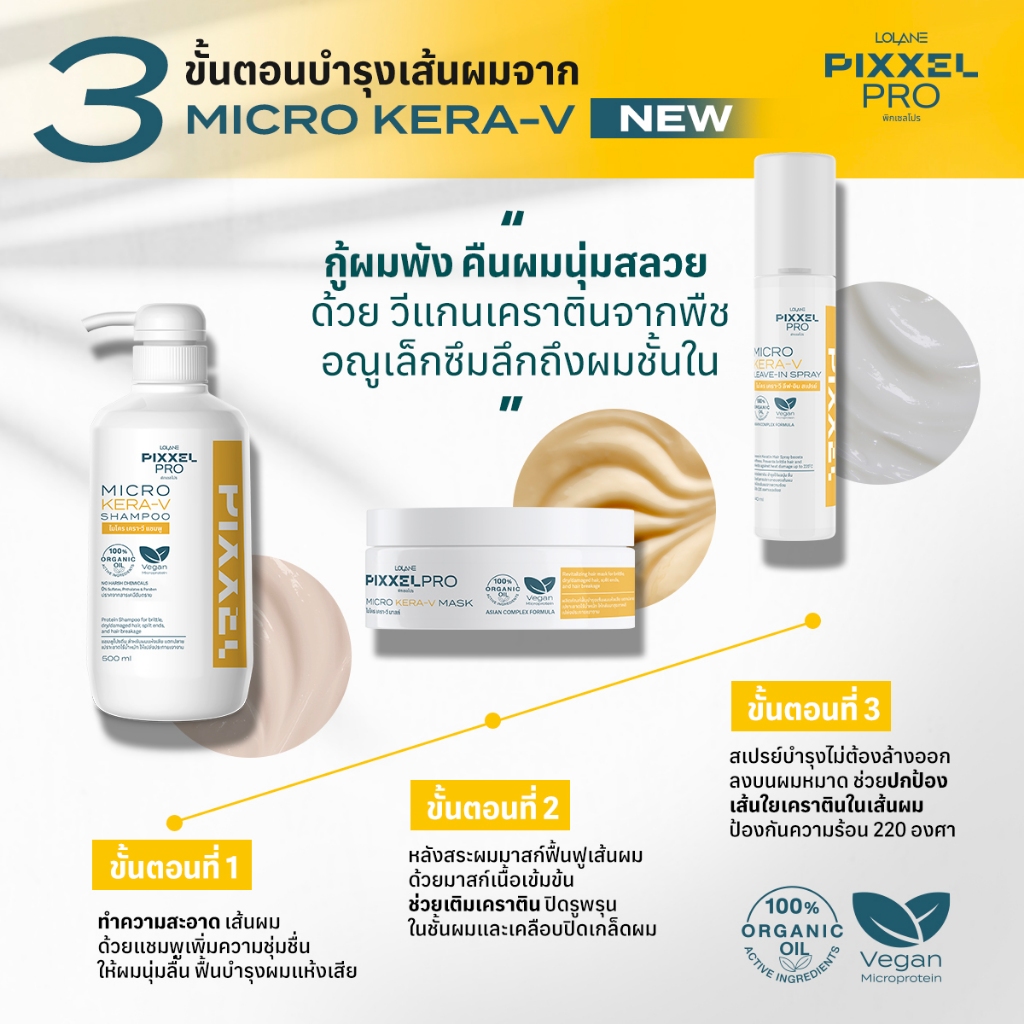 Lolane โลแลน พิกเซลโปร ไมโคร เครา-วี แชมพู / ทรีทเมนมาส์ก / สเปรย์ บำรุงเส้นผมแห้งเสีย ป้องกันความร้อนจากไดร์และหนีบ
