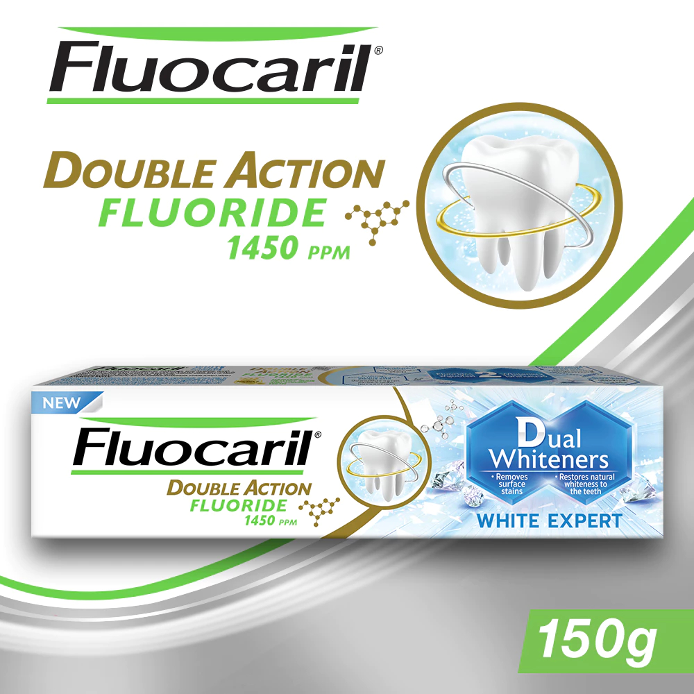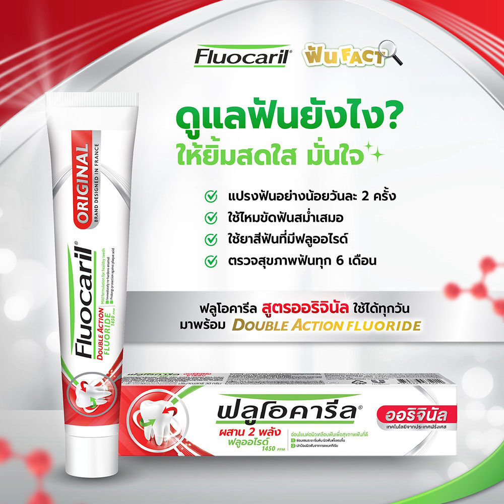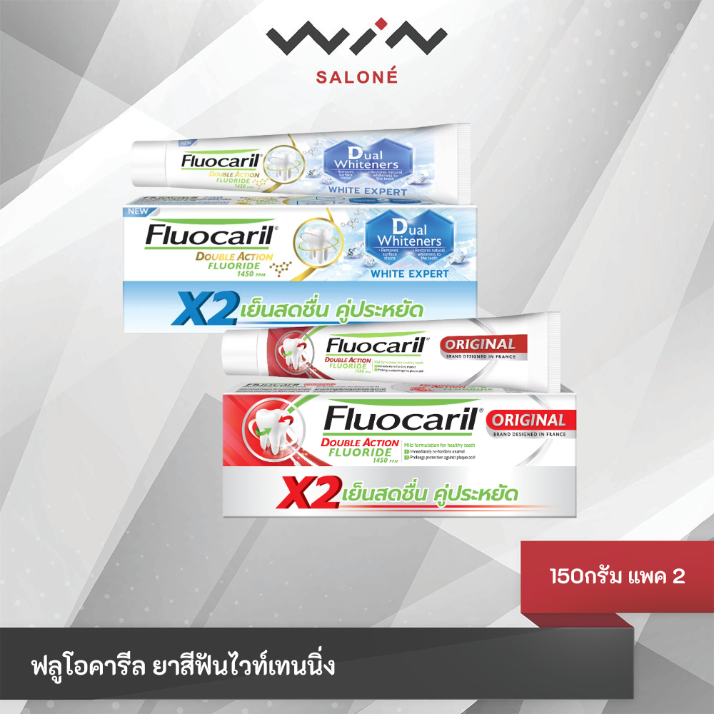 Fluocaril ฟลูโอคารีล ยาสีฟัน สูตรออริจินัล/ไวท์เทนนิ่ง 150 กรัม (แพ็คคู่) ช่วยให้ฟันแข็งแรง