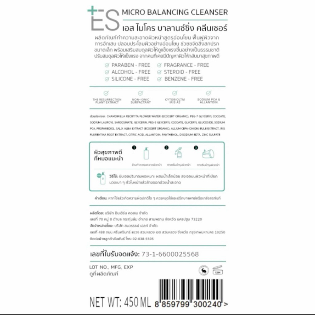 ลดพิเศษ!! เจลล้างหน้า เอส ไมโคร บาลานซ์ซิ่ง คลีนเซอร์ 450 มล. / ES Micro Balancing Cleanser 450 ml.