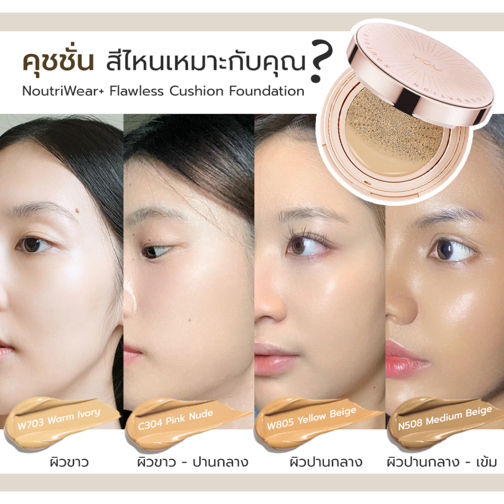 NoutriWear+ Flawless Cushion Foundation คุชชั่น You วาย.โอ.ยู เนื้อลิควิด ปกปิด บางเบา ขนาด 11 กรัม