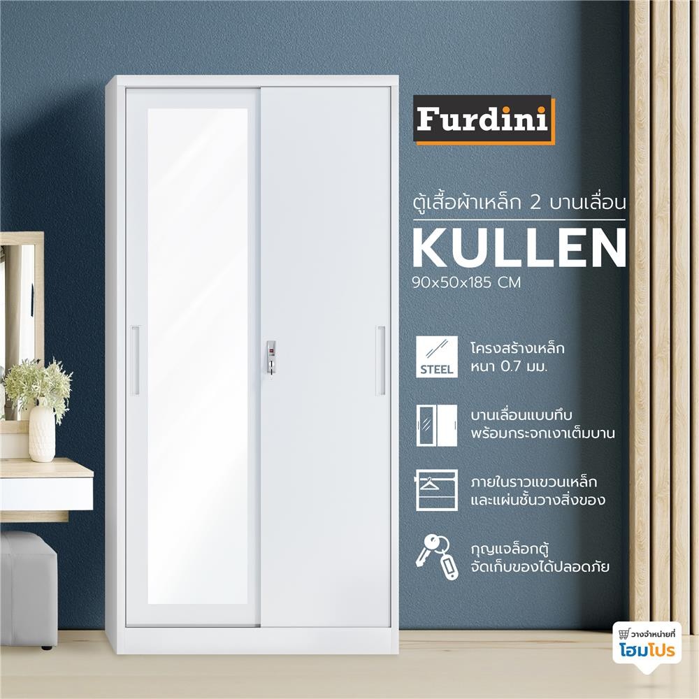 FURDINI ตู้เสื้อผ้าเหล็ก 2 บานเลื่อน KULLEN FYD-G009 สีขาว จัดส่งโดย HomePro