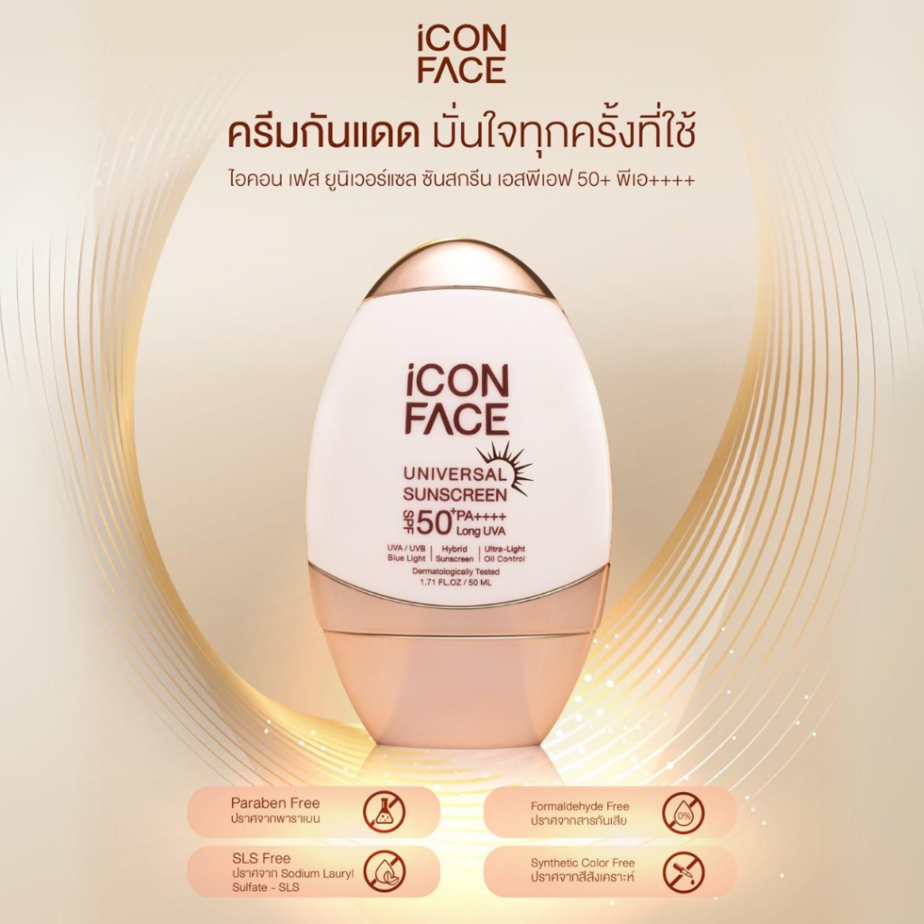 iCon Face Universal Sunscreen SPF 50+ PA++++ | ครีมกันแดดเนื้อบางเบา กันน้ำ กันเหงื่อ ไม่ติดแมสก์