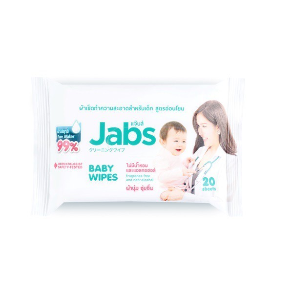 แจ๊บส์ ผ้าเช็ดทำความสะอาดสำหรับเด็ก 20แผ่น/Jabs Baby Wipes 20 Sheets