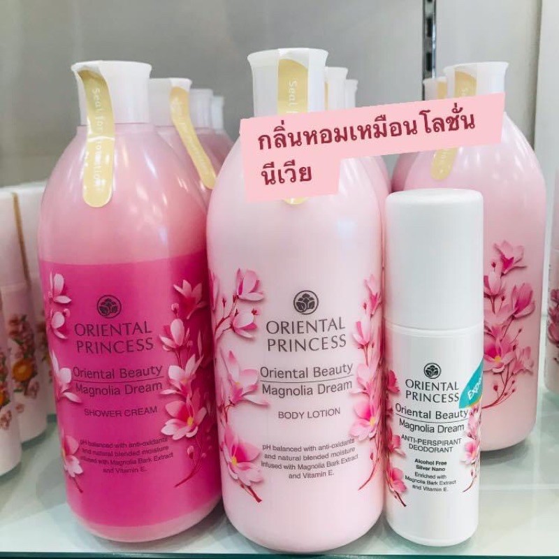 Oriental Princess Beauty we love ops Shower Cream Body Lotion + Deodorant โลชั่น โรลออน ลูกกลิ่ง ครีมอาบน้ำ กลิ่นดอกไม้