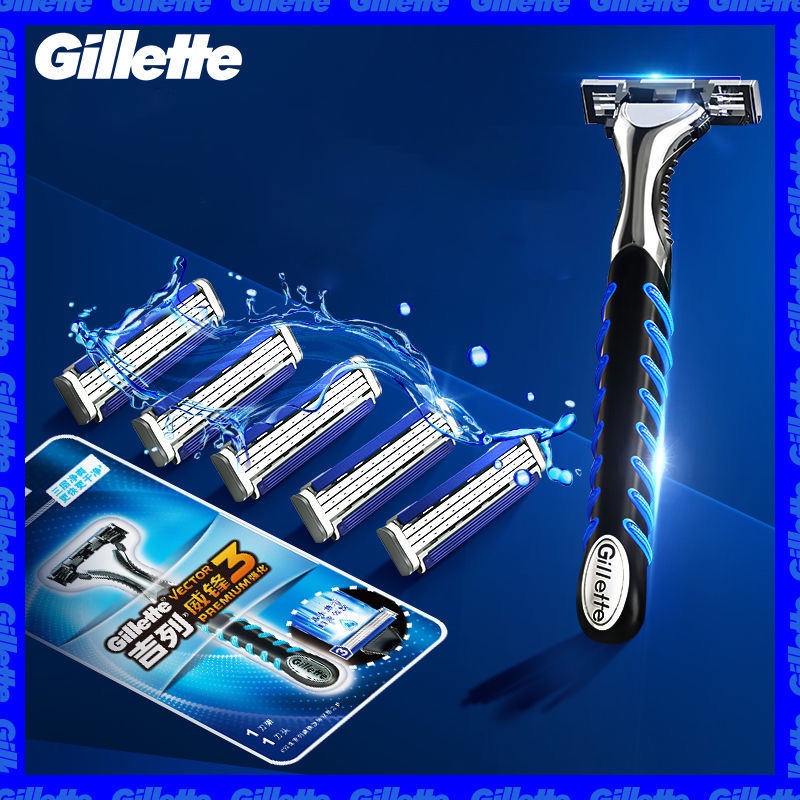ยิลเลตต์ เวกเตอร์ 3 มีดโกนโกนหนวดมีดโกนสําหรับผู้ชายคู่มือมีดโกนความปลอดภัยอย่างรวดเร็วเครื่องโกนหนวดเครายิลเลตต์ผู้ชายมีดโกนและใบมีดคมของขวัญฟ