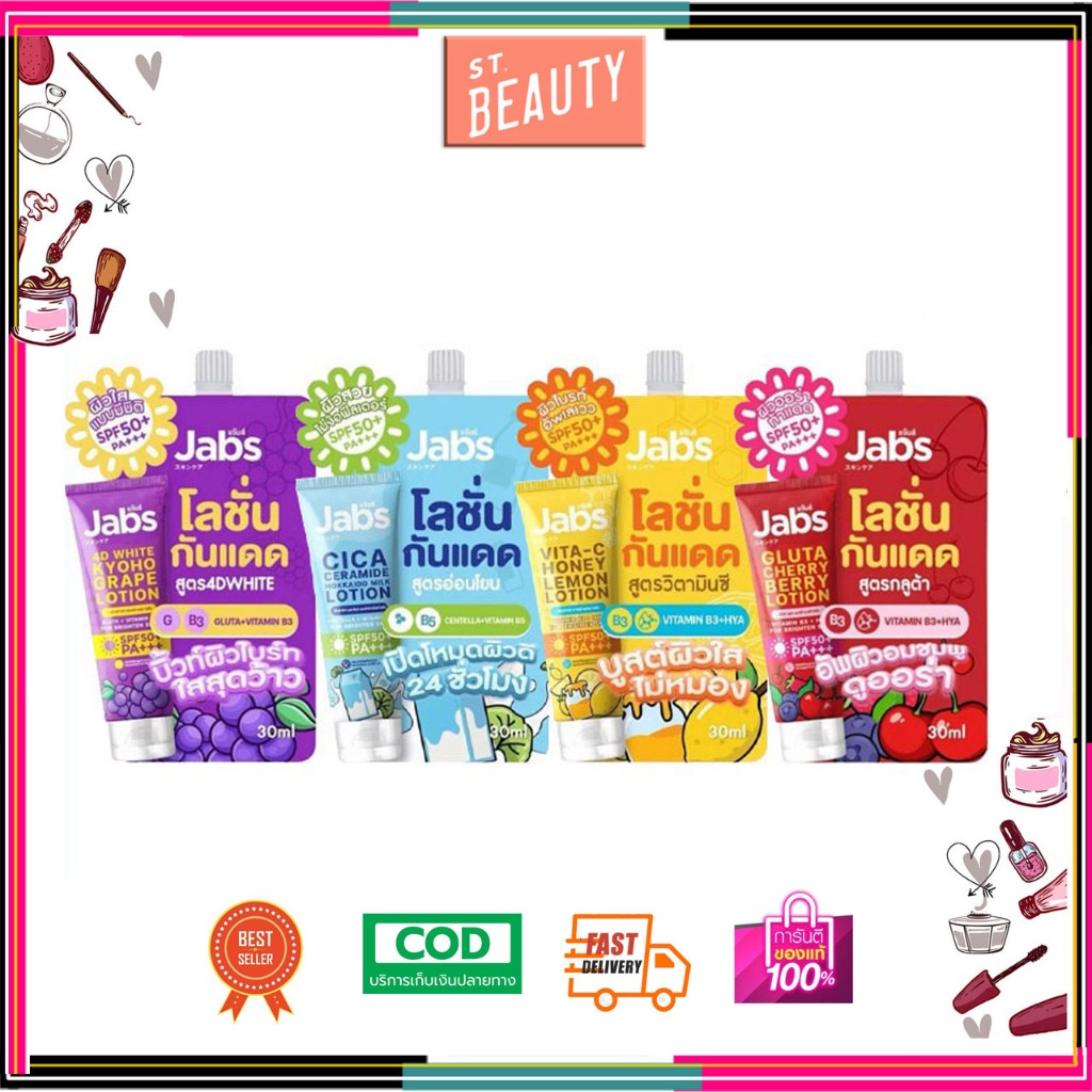 (1ซอง)Jabs แจ๊บส์ ไบรท์บูสเตอร์ ยูวี โพรเทคชั่น บอดี้โลชั่น SPF50 PA+++ กันแดดแบบพกพา ขนาด 30 มล. มี4สูตร