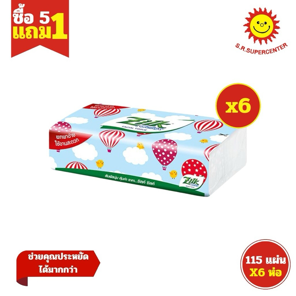 [ 5แถม1 ] Zilk ซิลค์ ซอฟท์แพ็ค ทราเวล กระดาษเช็ดหน้า 115 แผ่นคู่ (แพ็ค6ห่อ)*บอลลูน