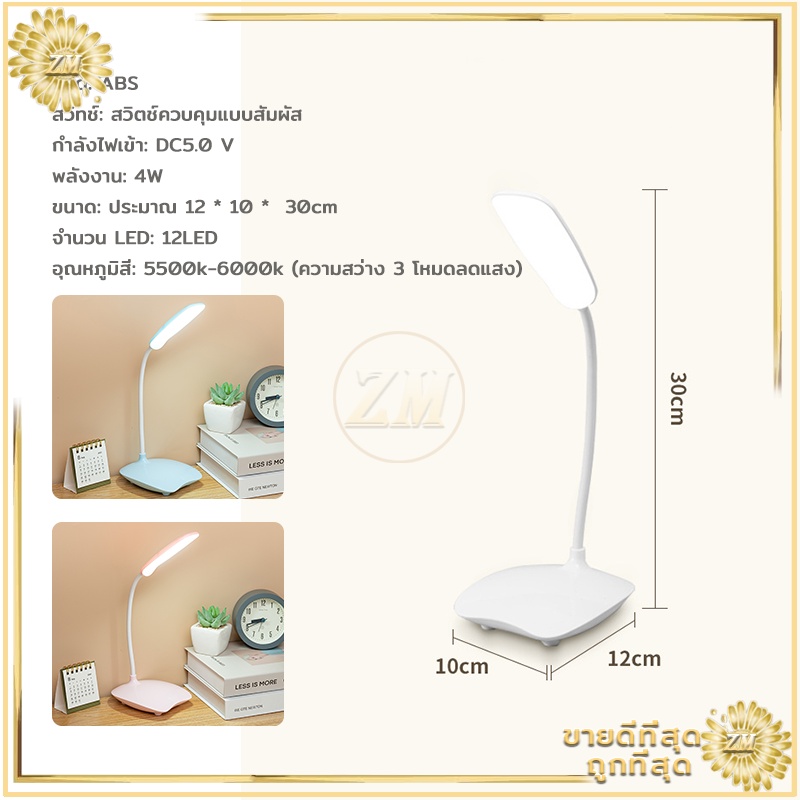 ไฟตั้งโต๊ะ โคมไฟ led table lamp อ่านหนังสือ ตั้งโต๊ะมินิมอล ปรับแสงได้3สี หมุนได้ 360 องศา
