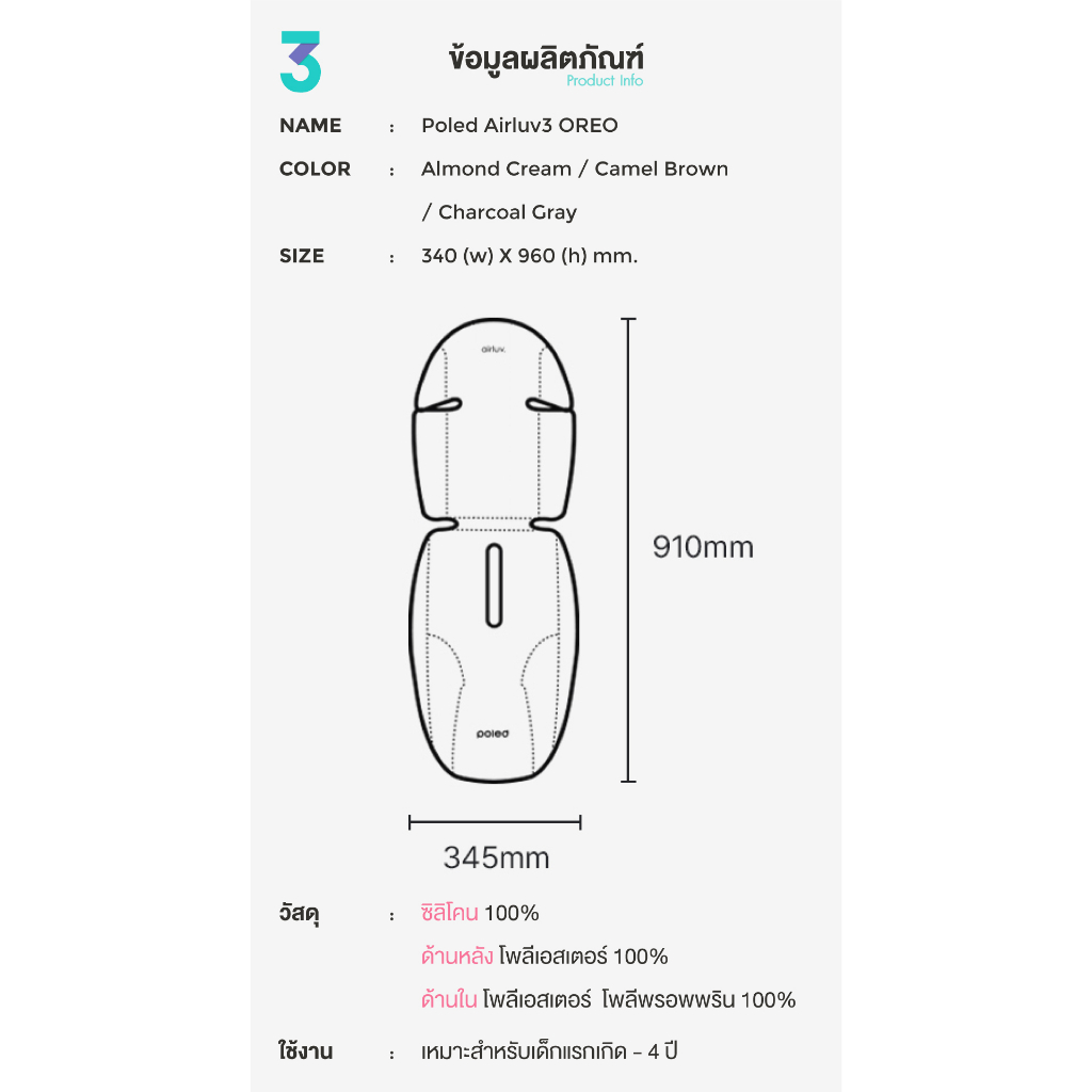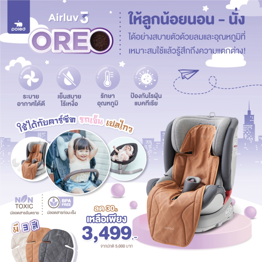 POLED (โพเลด) AIRLUV3 Oreo เบาะรองนอนบนคาร์ซีทหรือรถเข็นเด็ก