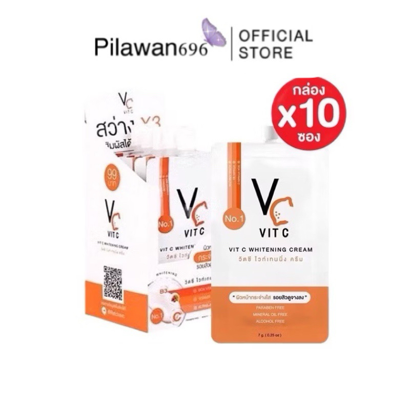 VC. Vit C Whitening Cream วิตซี ไวท์เทนนิ่ง ครีม ยกกล่อง(7 กรัม x 10 ซอง)