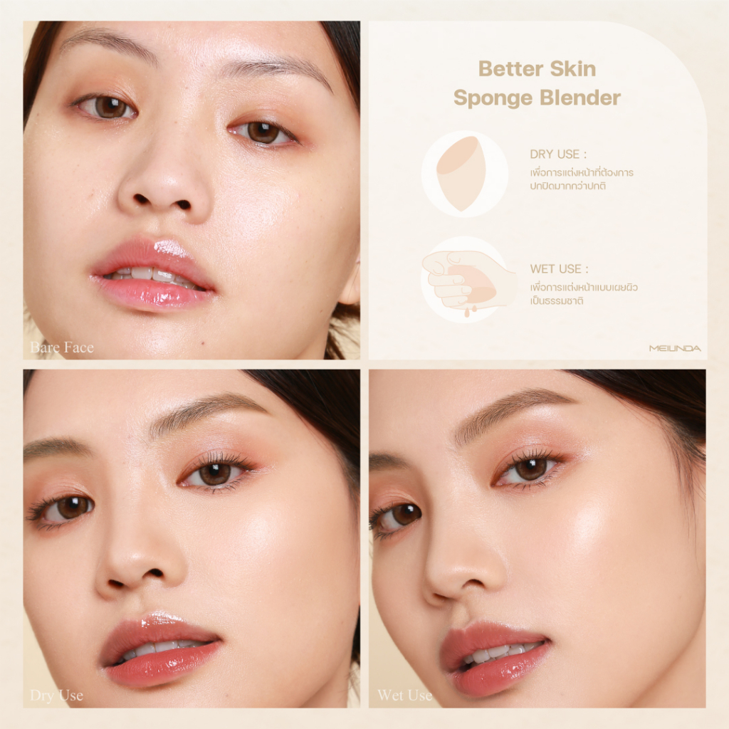 ถูก/แท้/มีไลฟ์ ฟองน้ำแต่งหน้า พัฟแต่งหน้า MEILINDA Better Skin Sponge Blender พัฟ ฟองน้ำ สปอง